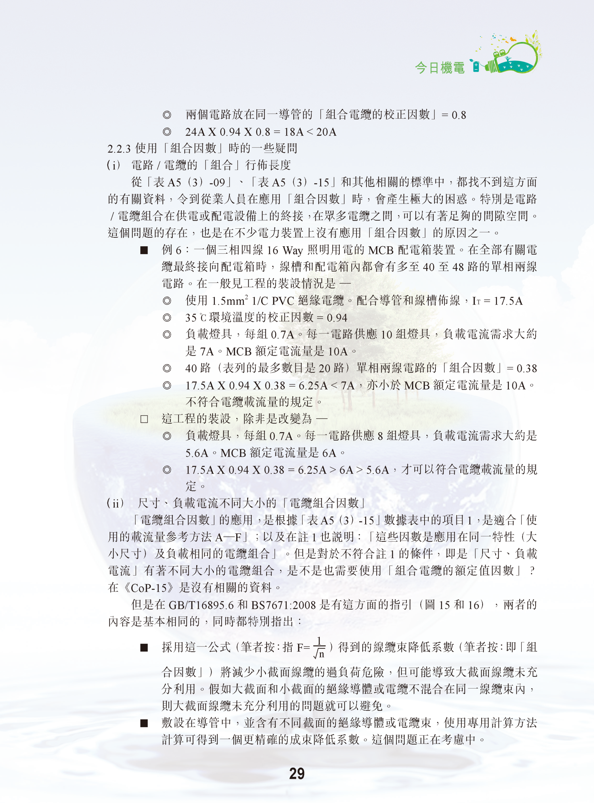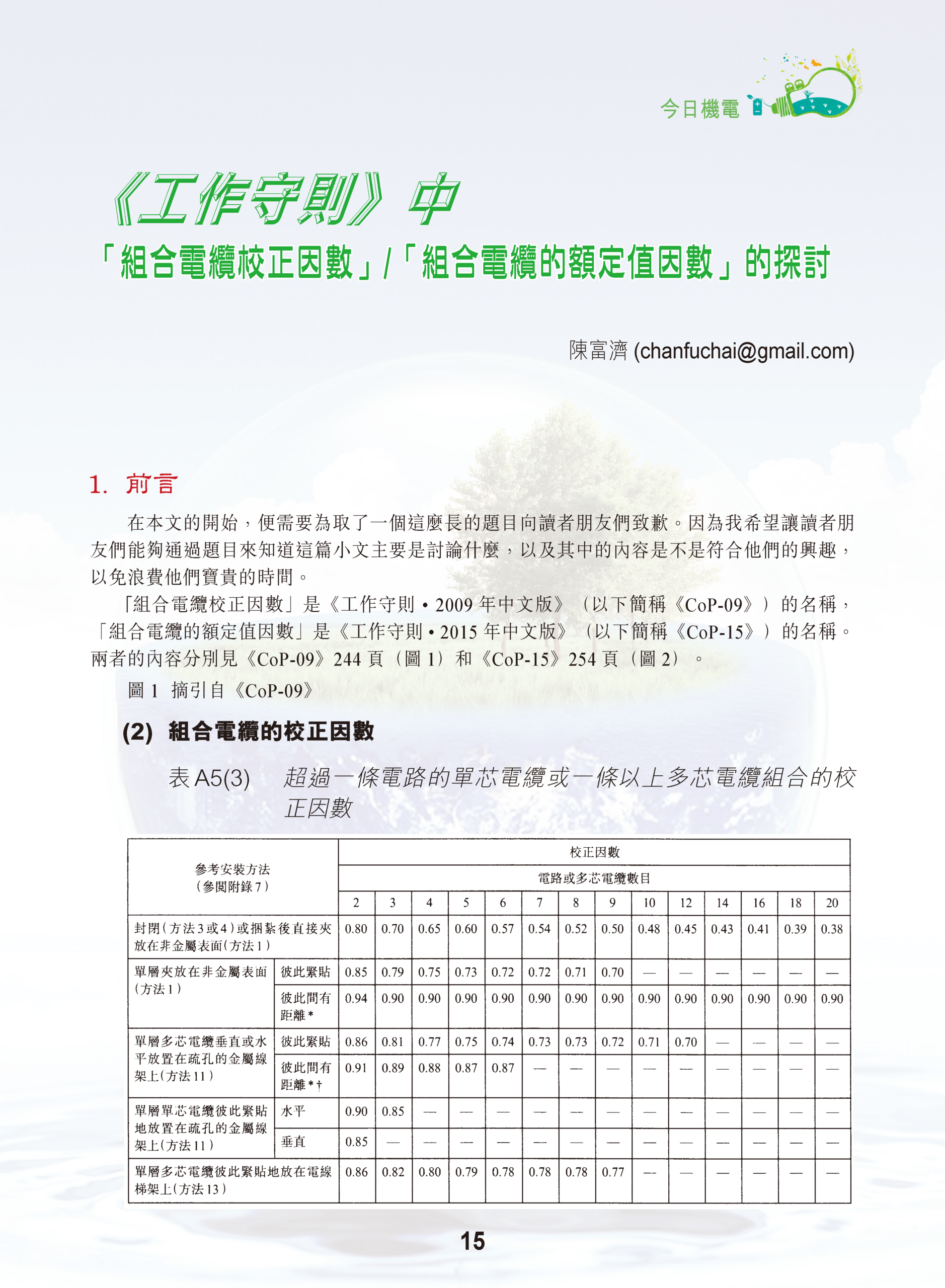 【今日機電第39期】《工作守則》中組合電纜校正因數組合電纜的額定值因數”的探討-陳富濟