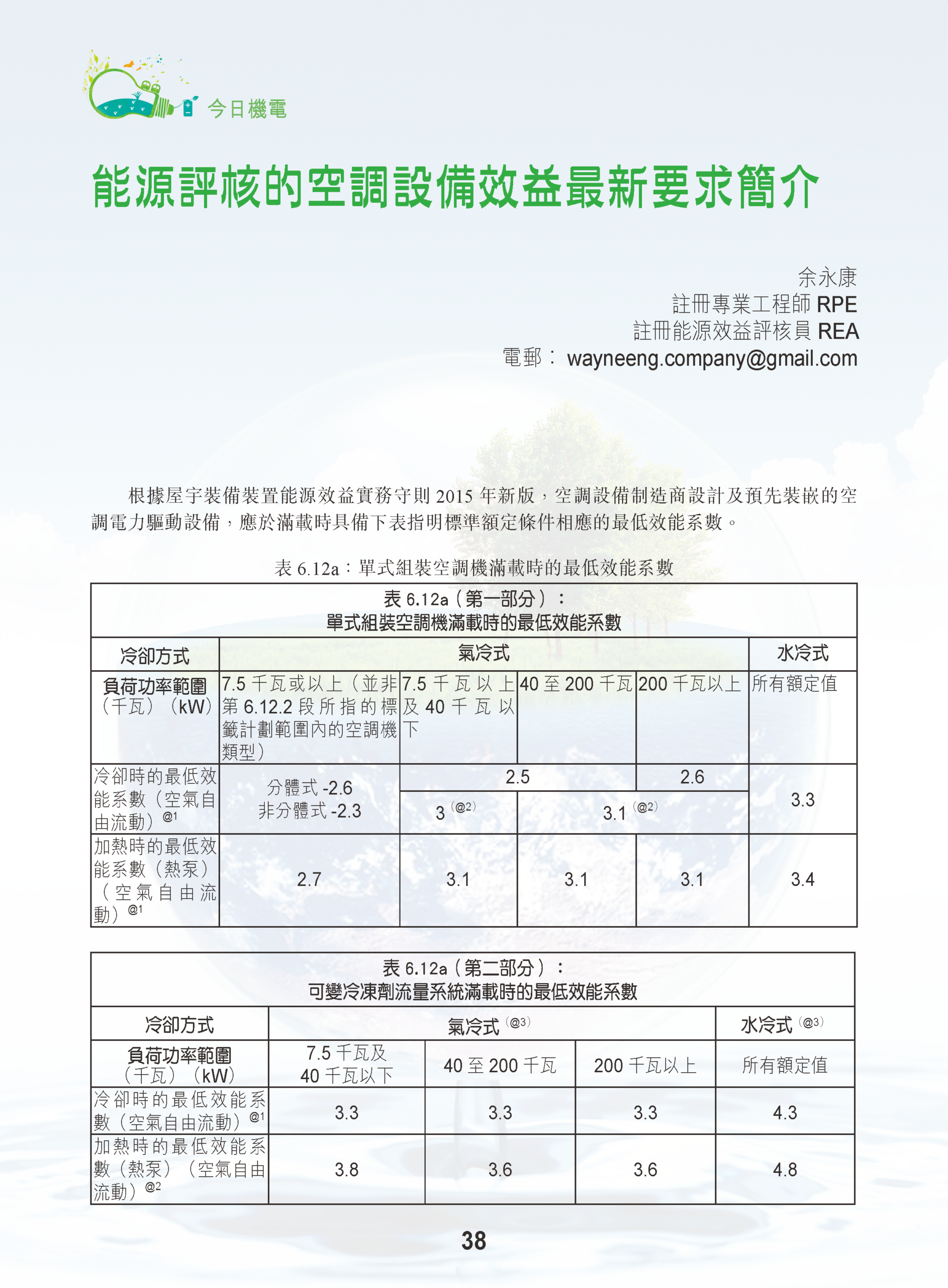 【今日機電第39期】能源評核的空調設備效益最新要求簡介-余永康