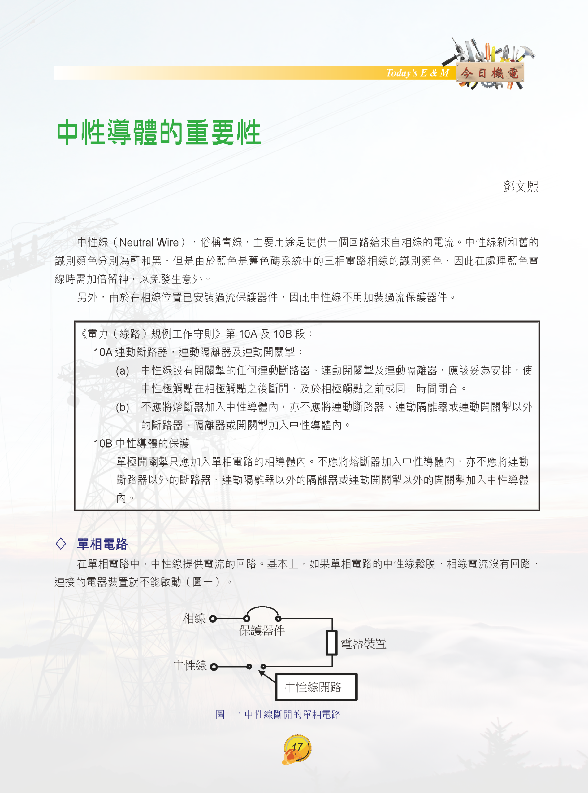 【今日機電第40期】中性導體的重要性-鄧文熙