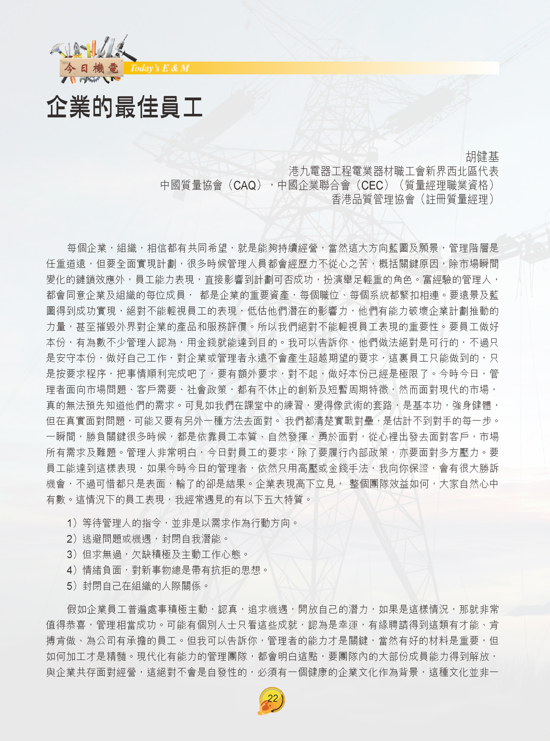 【今日機電第40期】企業的最佳員工-胡健基