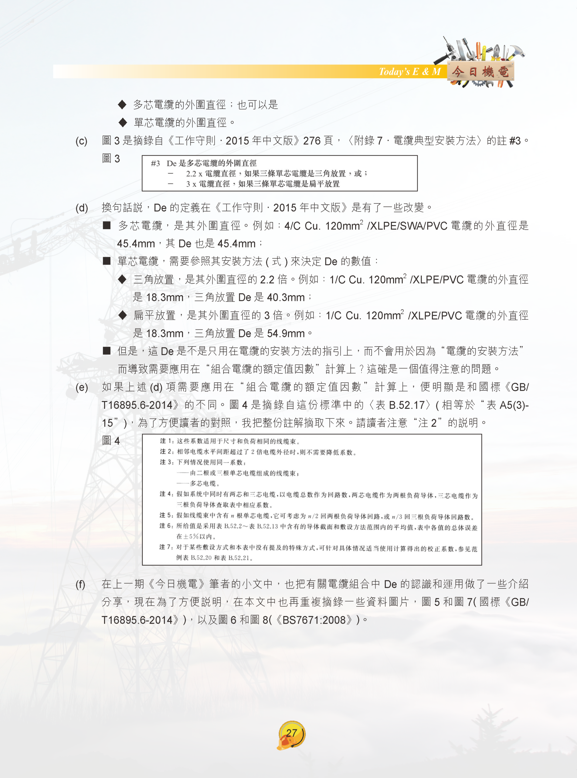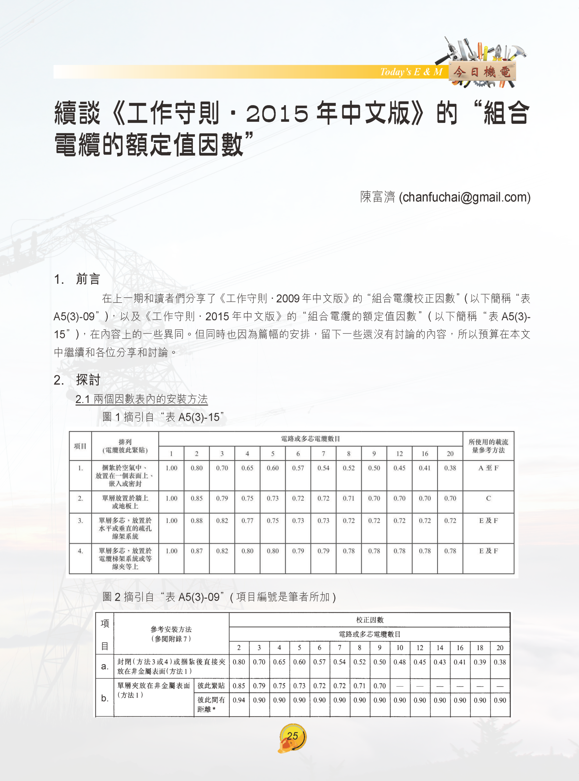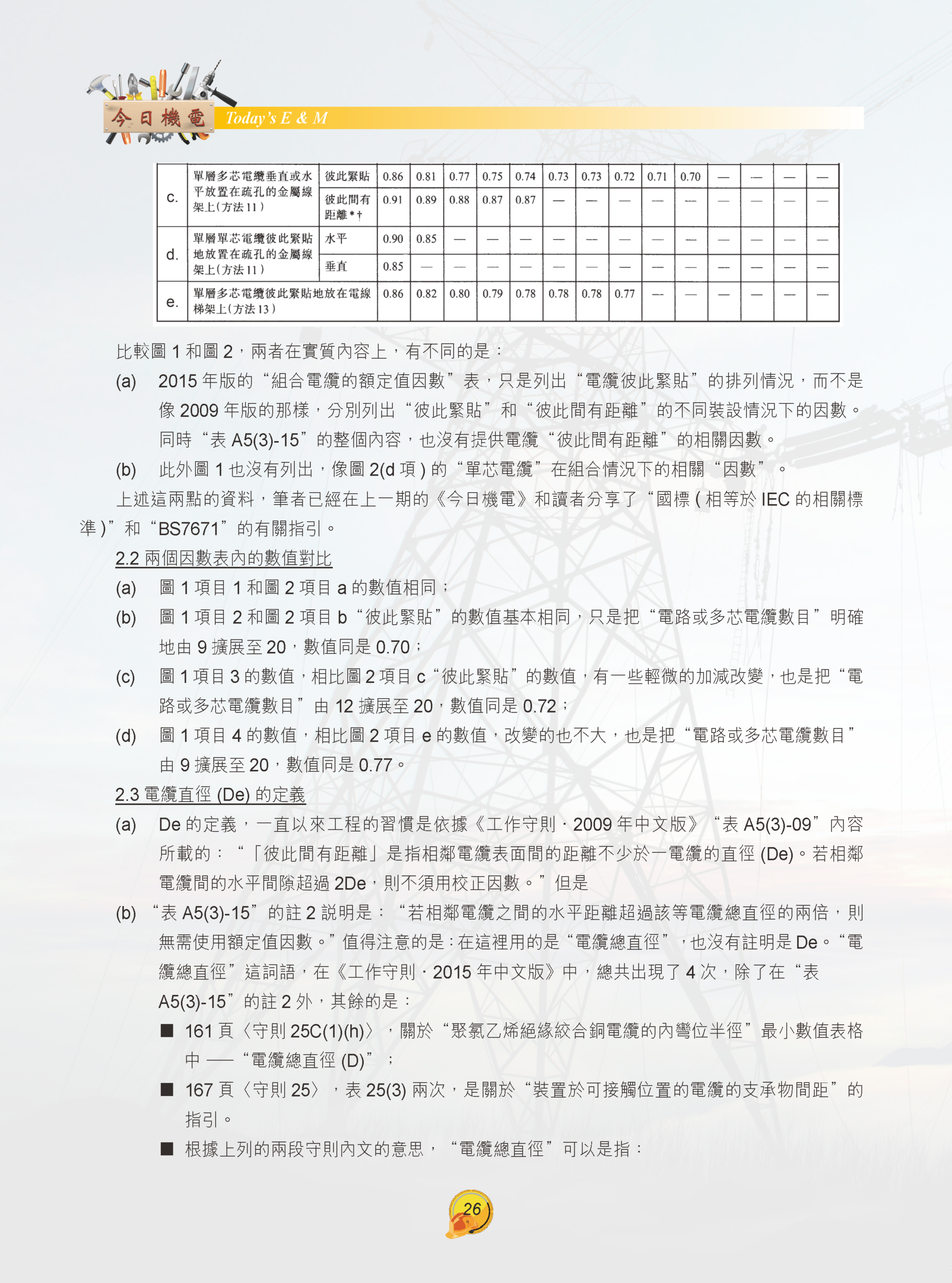 【今日機電第40期】續談《工作守則•2015年中文版》的“組合電纜的額定值因數”-陳富濟