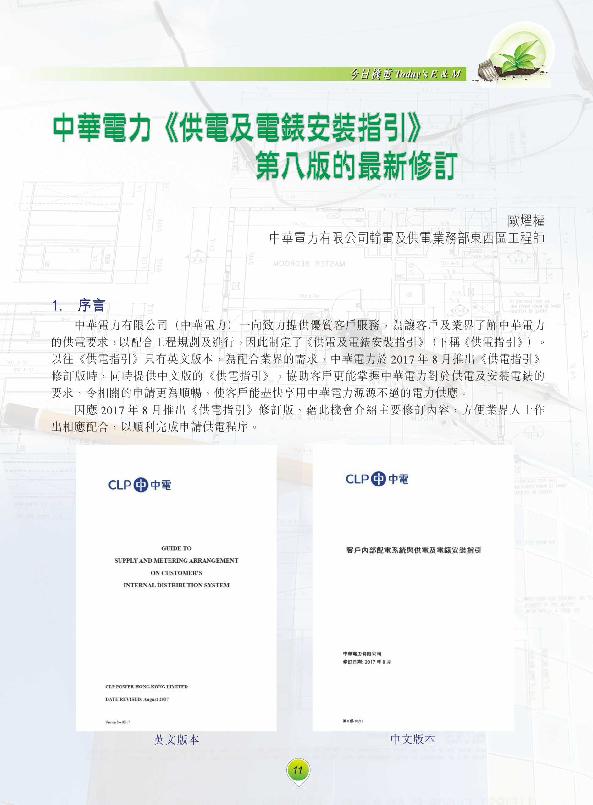 【今日機電第41期】中華電力《供電及電錶安裝指引》第八版的最新修訂-歐燿權
