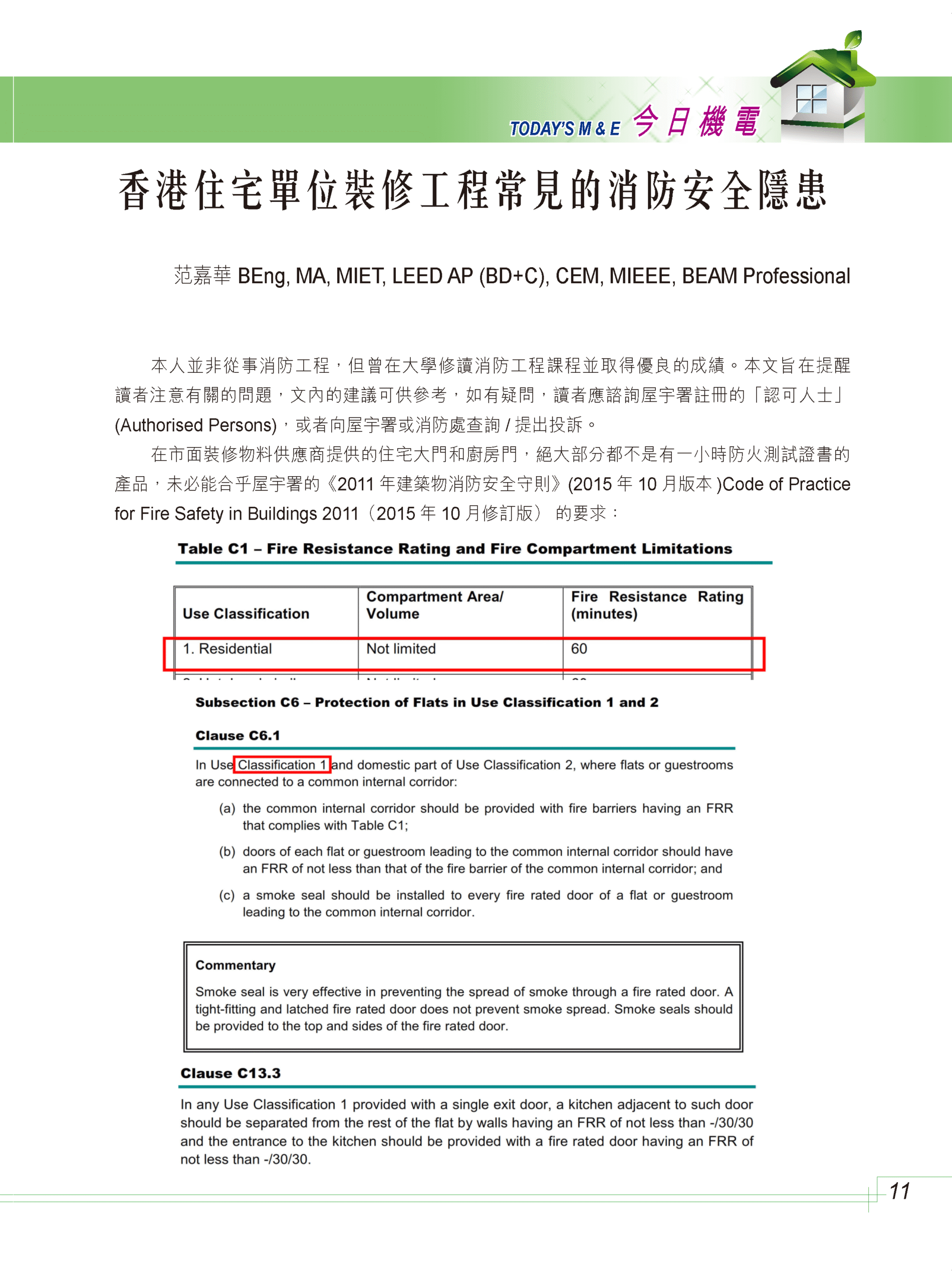 【今日機電第42期】香港住宅單位裝修工程常見的消防安全隱患-范嘉華