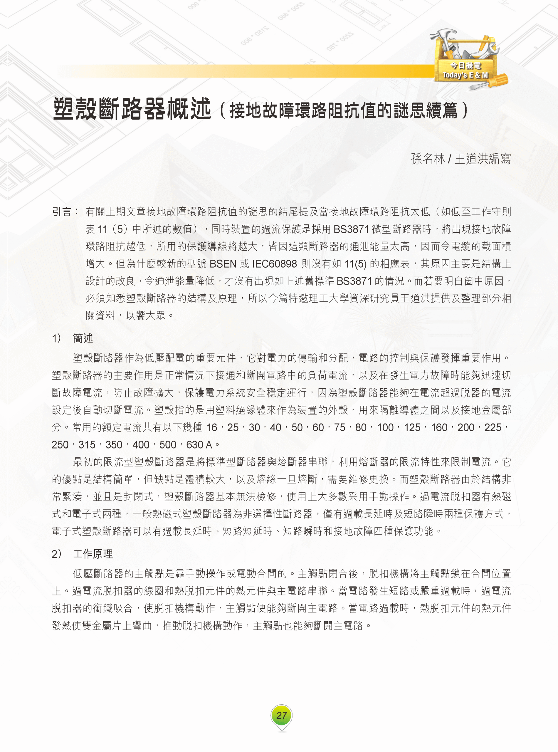 【今日機電第43期】塑殼斷路器概述-孫名林、王道洪