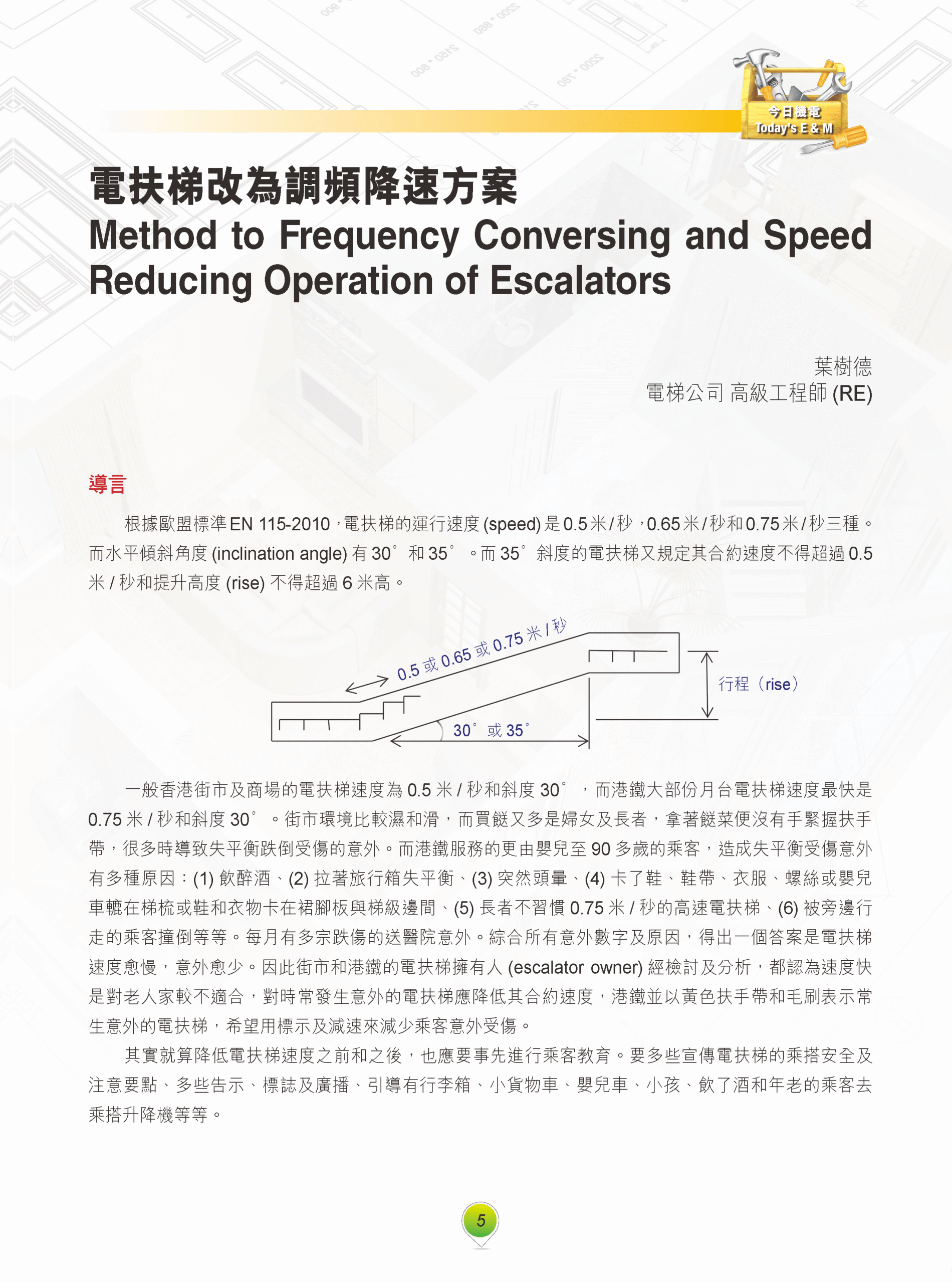 【今日機電第43期】電扶梯改為調頻降速方案-葉樹德