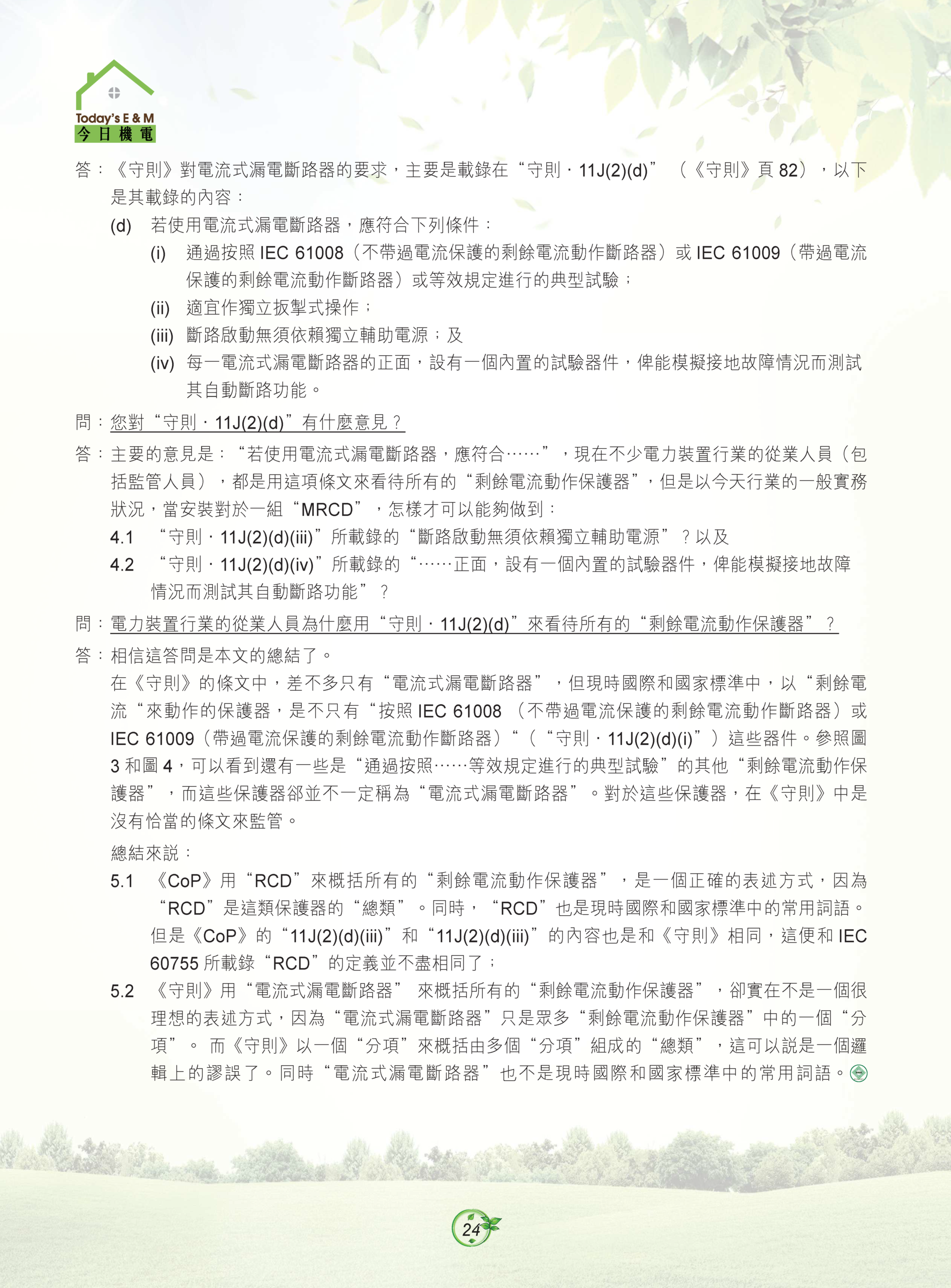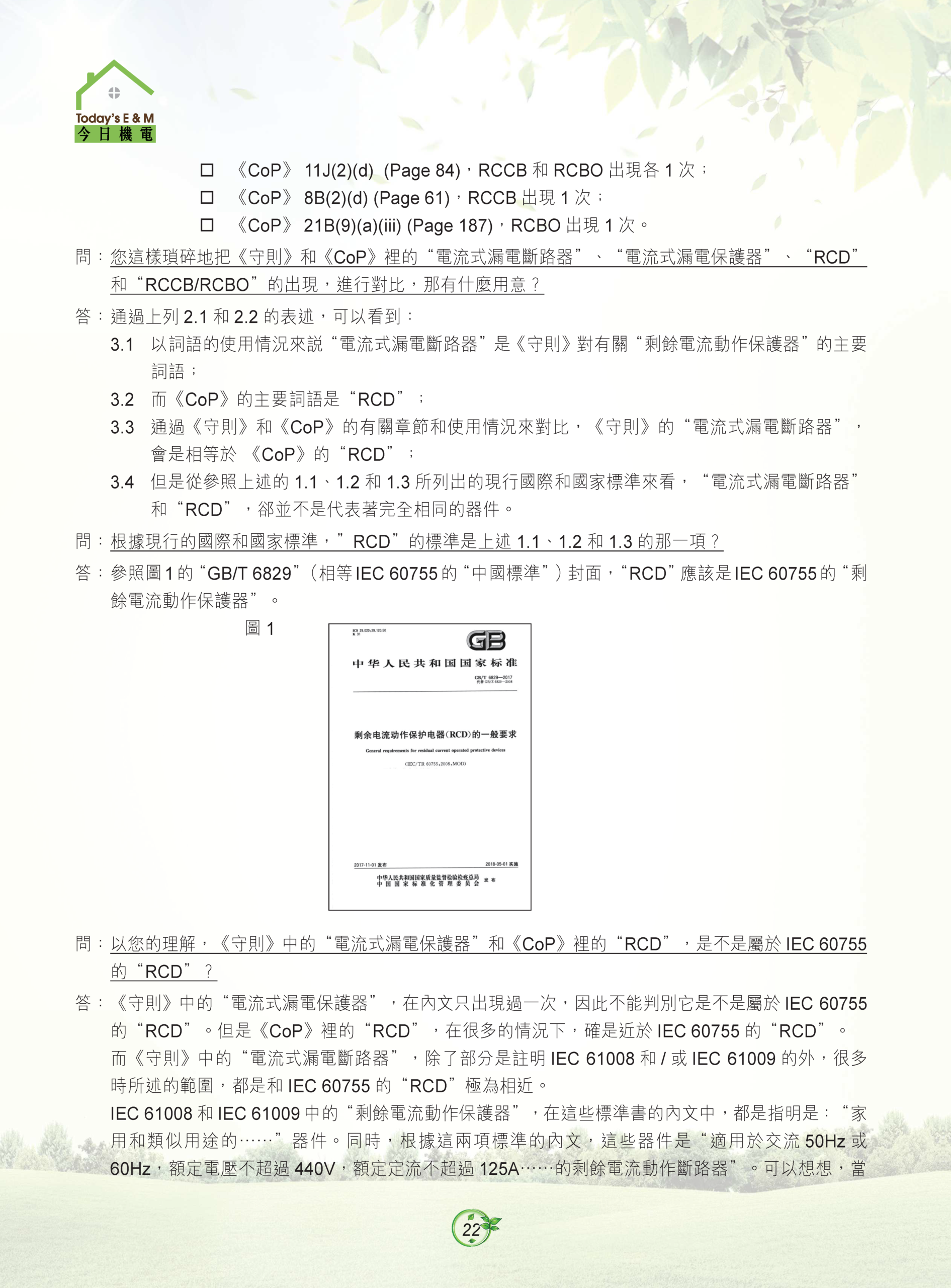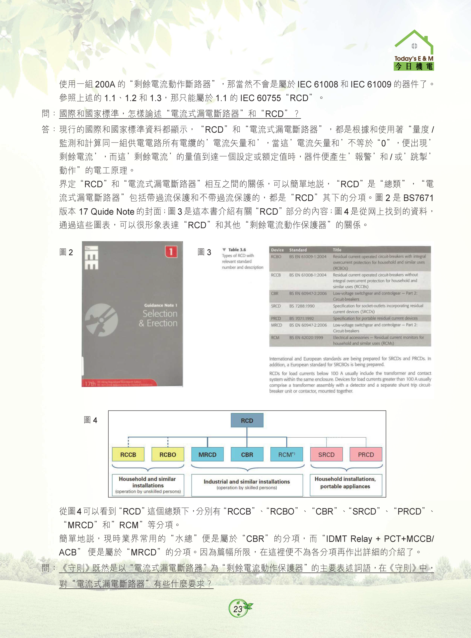 【今日機電第46期】再談《工作守則》中的“電流式漏電斷路器”和”RCD”-陳富濟