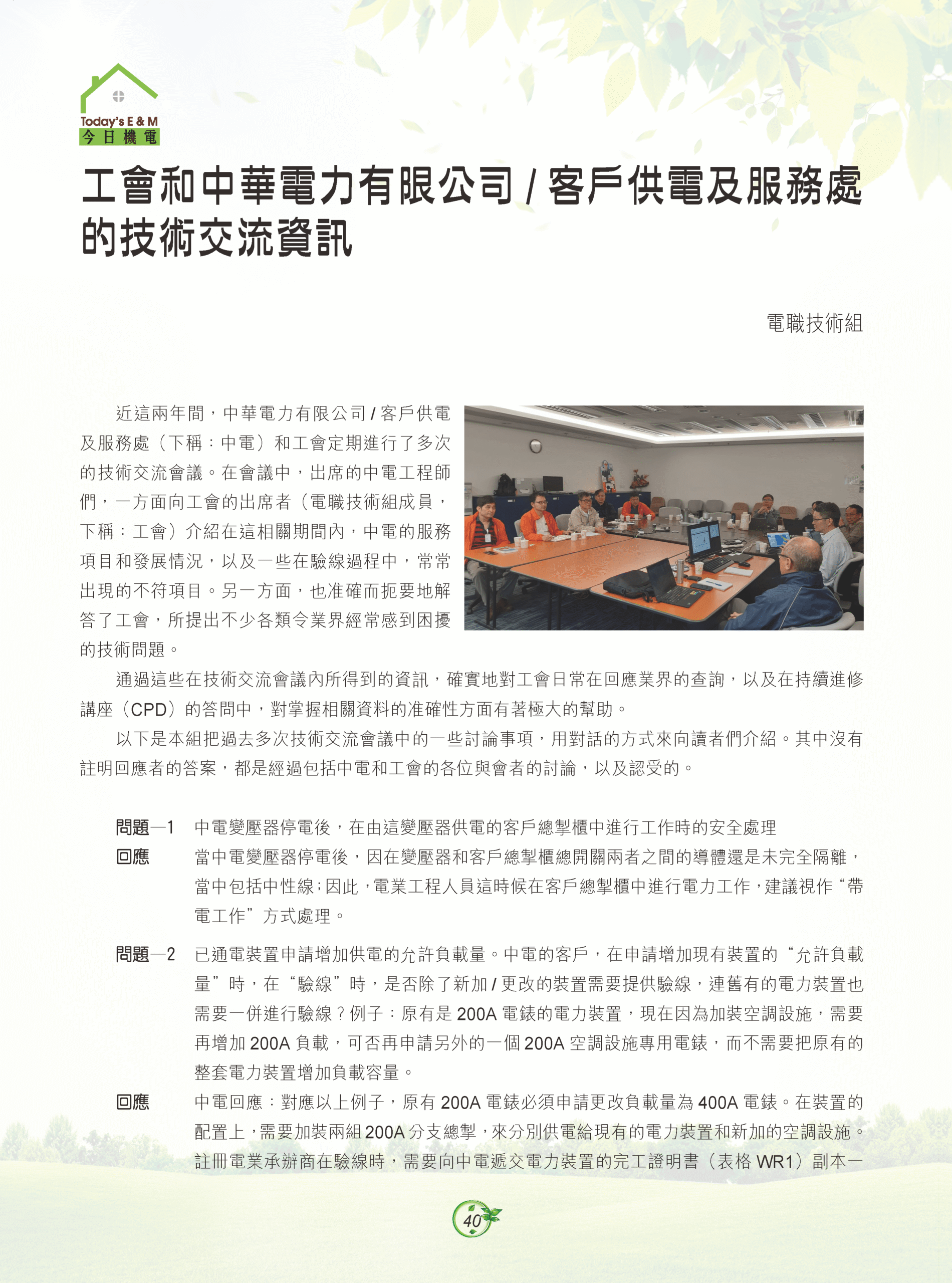 【今日機電第46期】工會和中華電力有限公司技術交流資訊-電職技術組