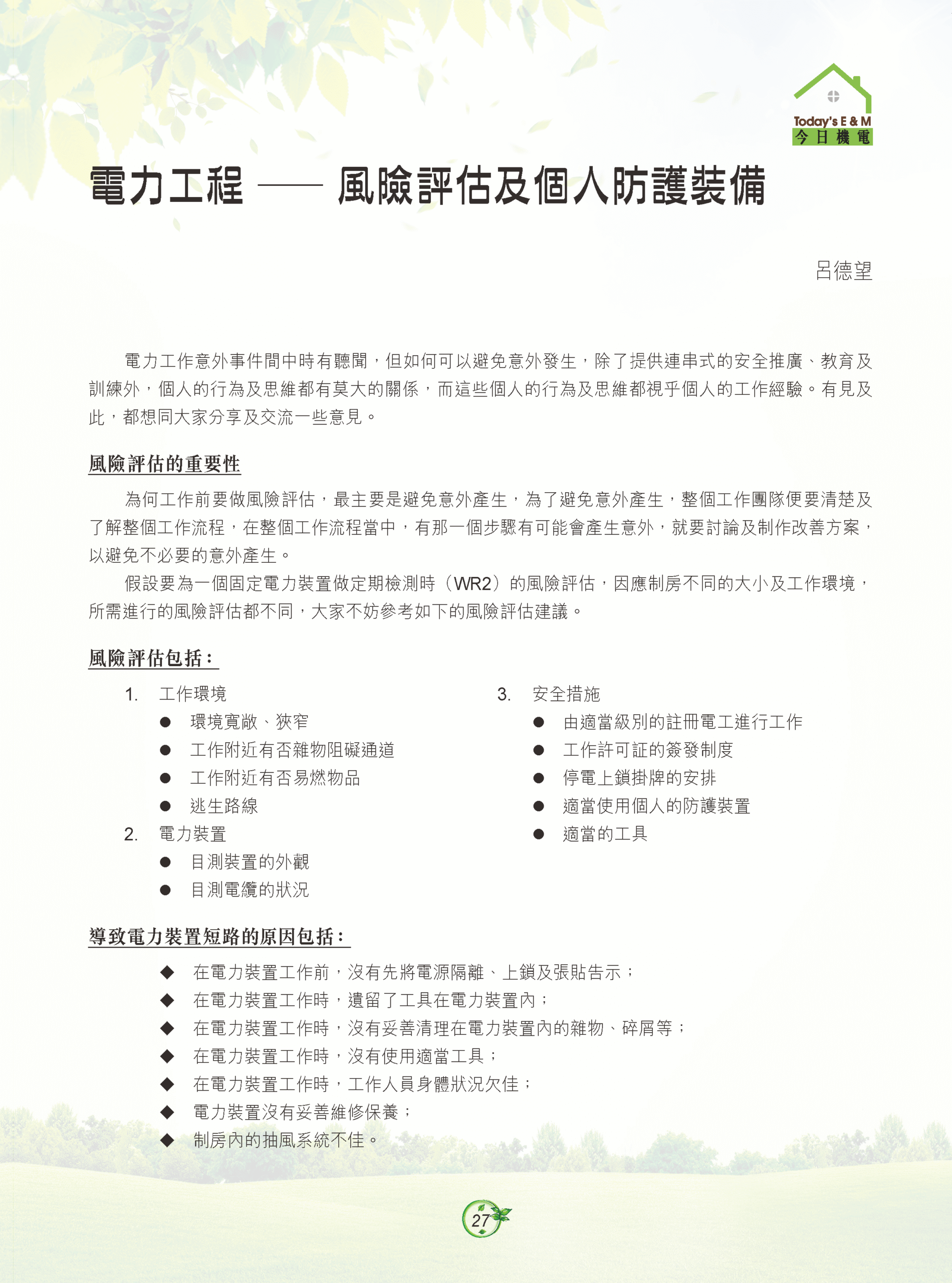 【今日機電第46期】電力工程 ─ 風險評估及個人防護裝備-呂德望