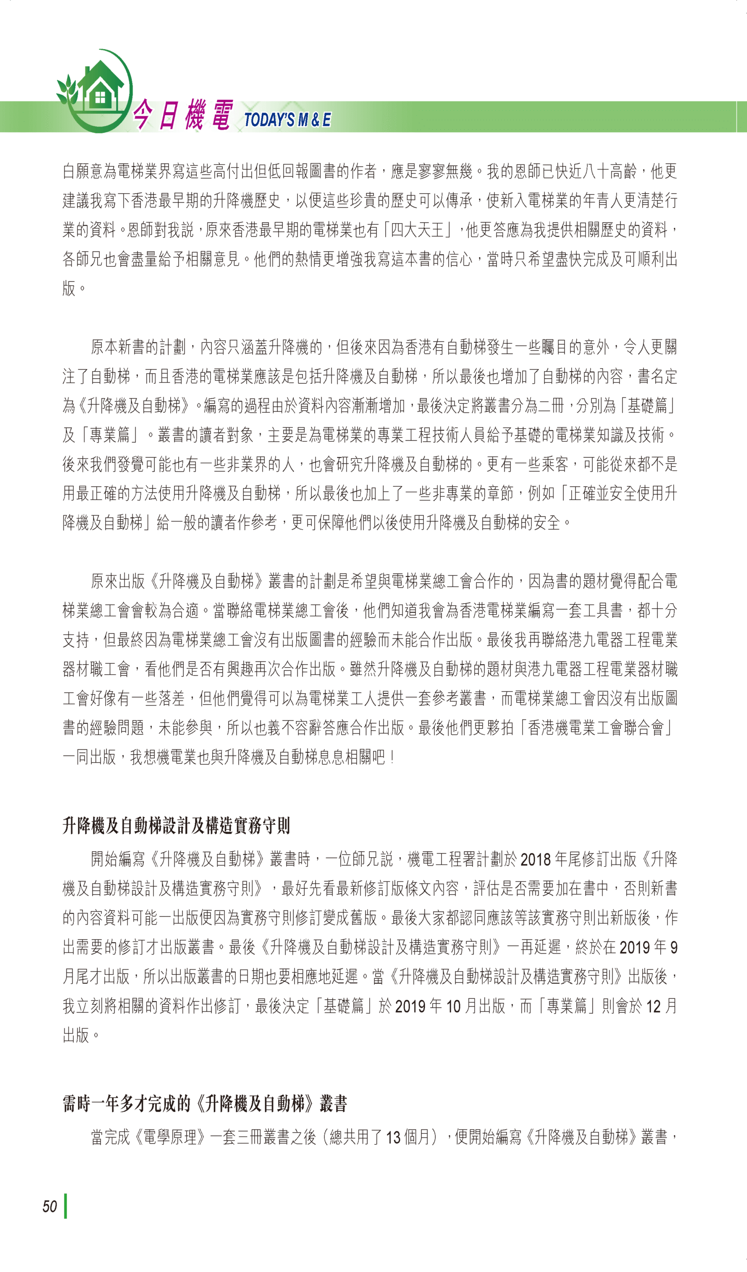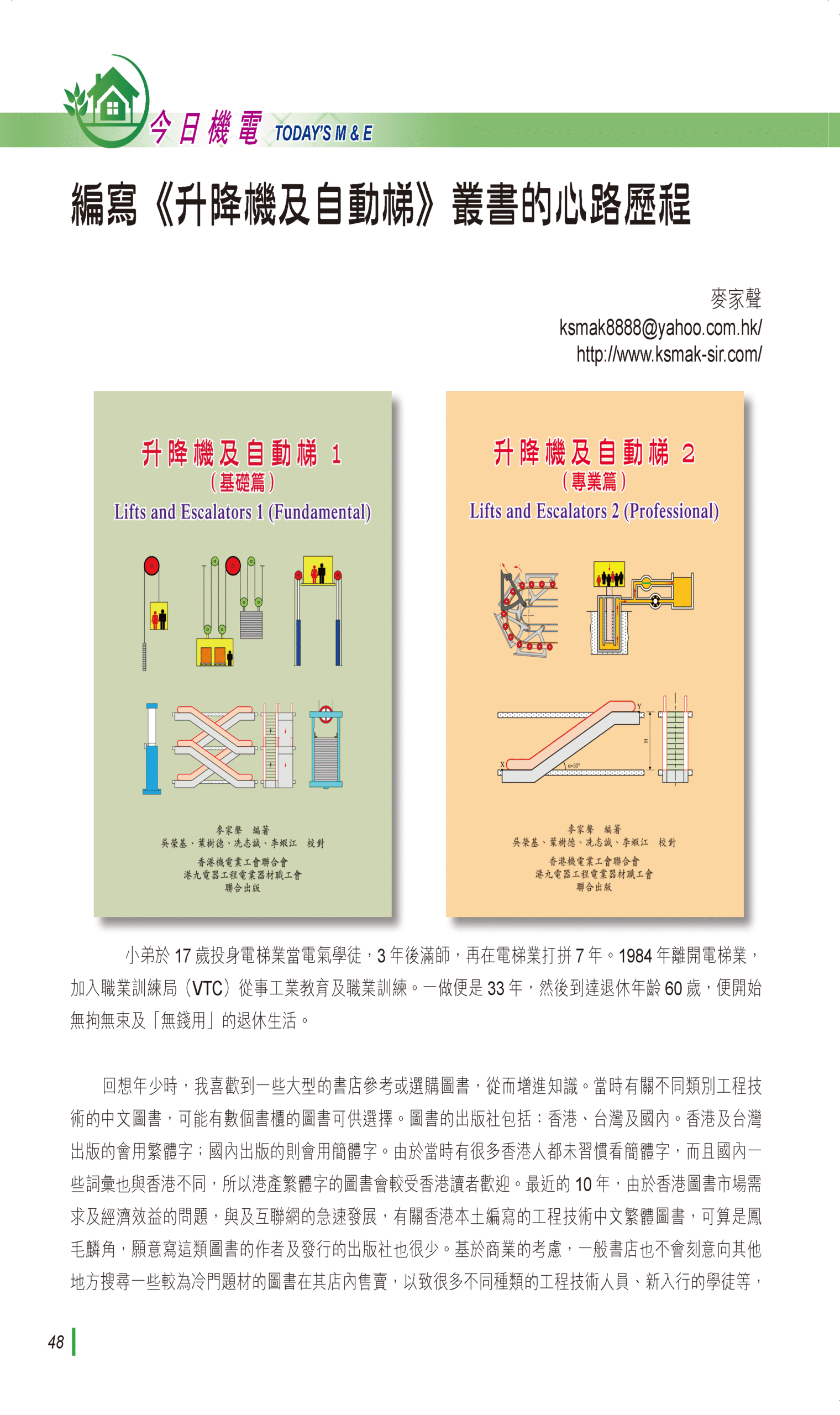 【今日機電第47期】編寫《升降機及自動梯》叢書的心路歷程-麥家聲