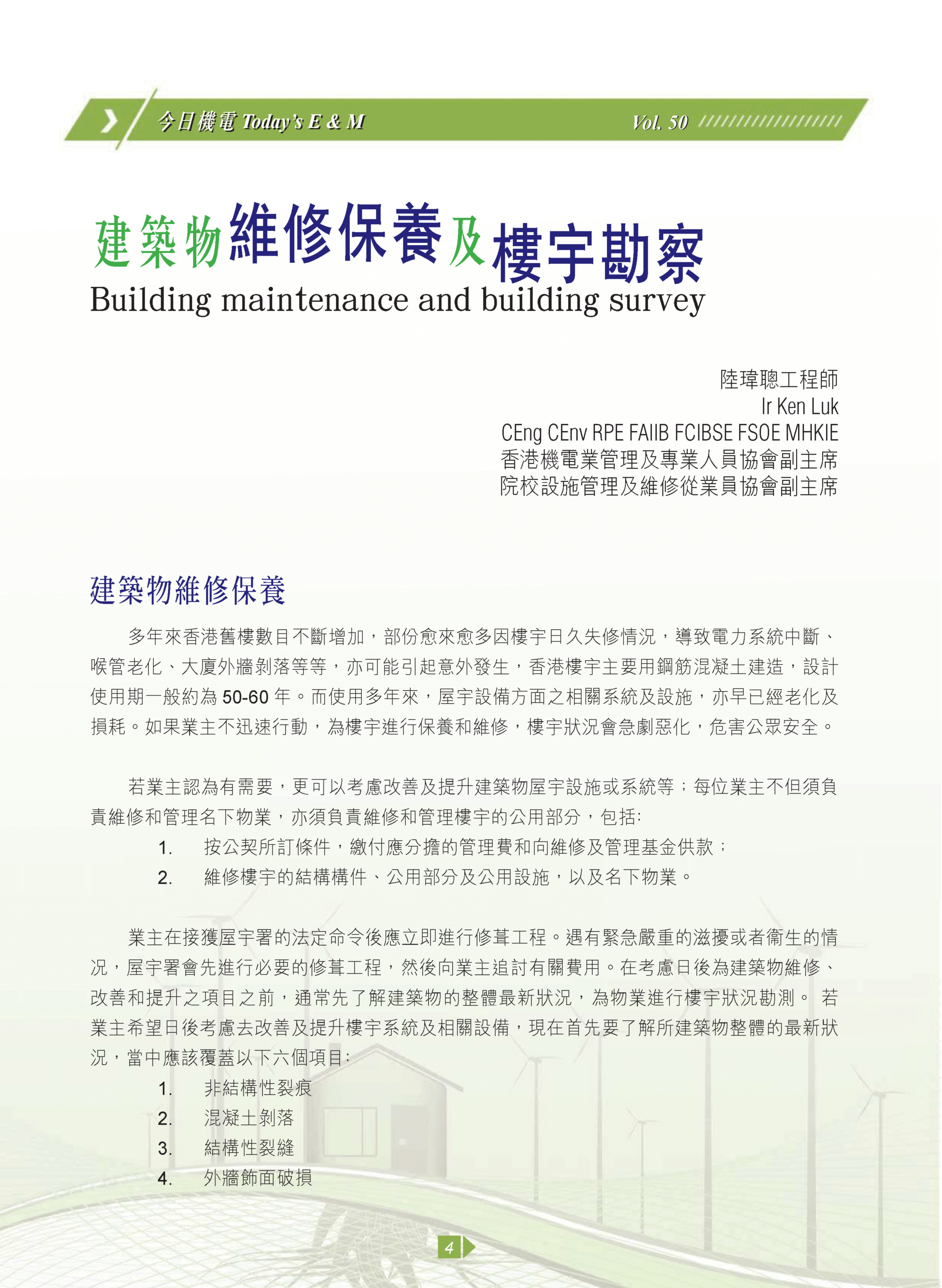 【今日機電第50期】建築物維修保養及樓宇勘察-Ir Ken Luk