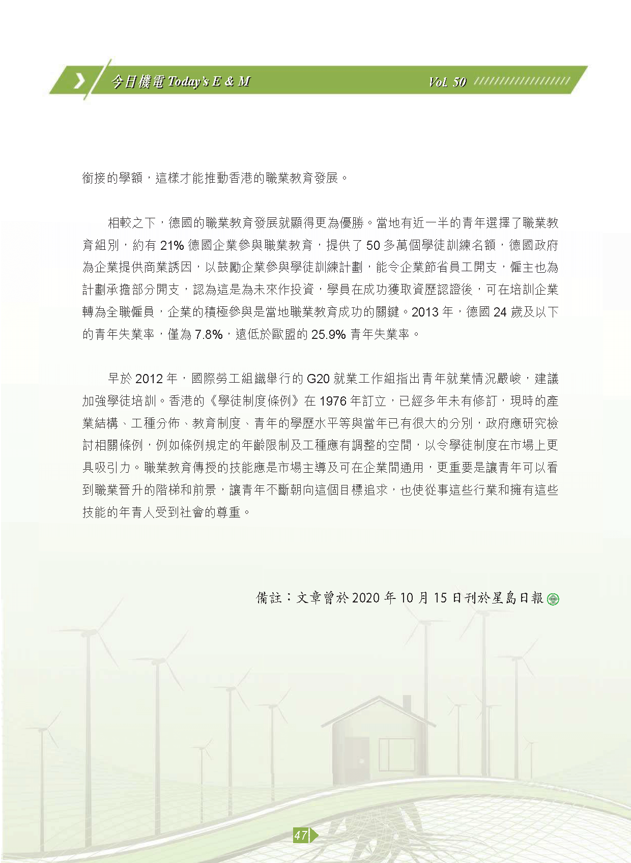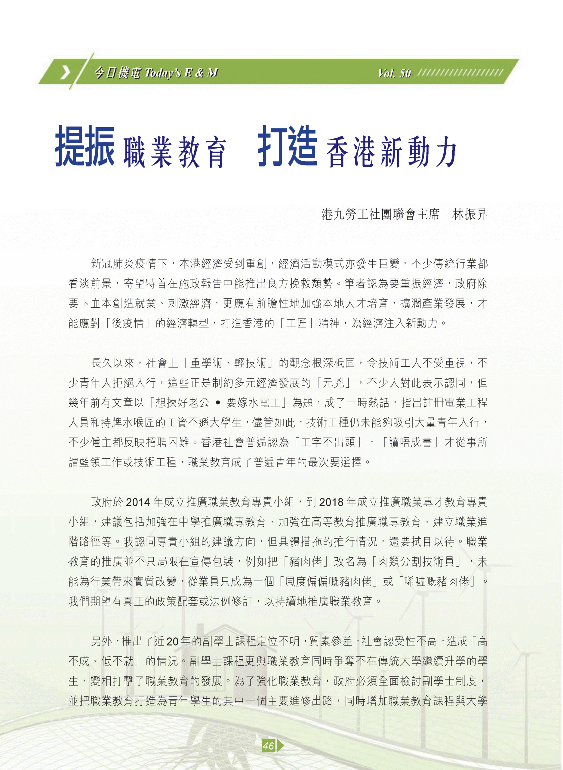 【今日機電第50期】提振職業教育 打造香港新動力
