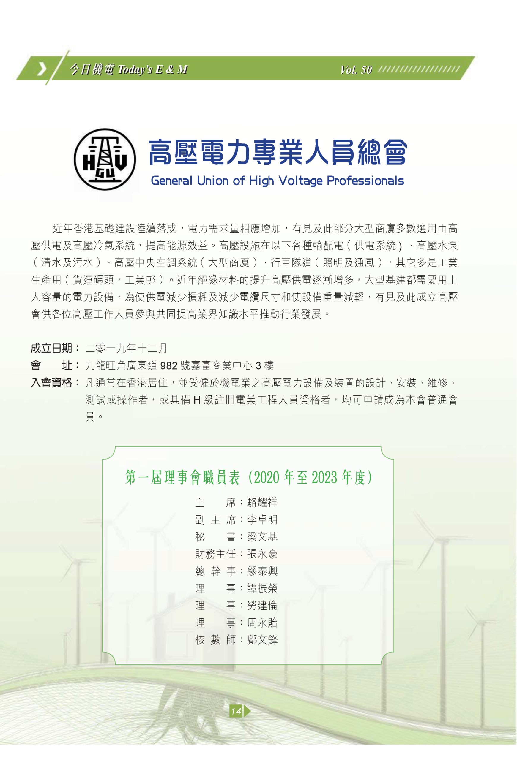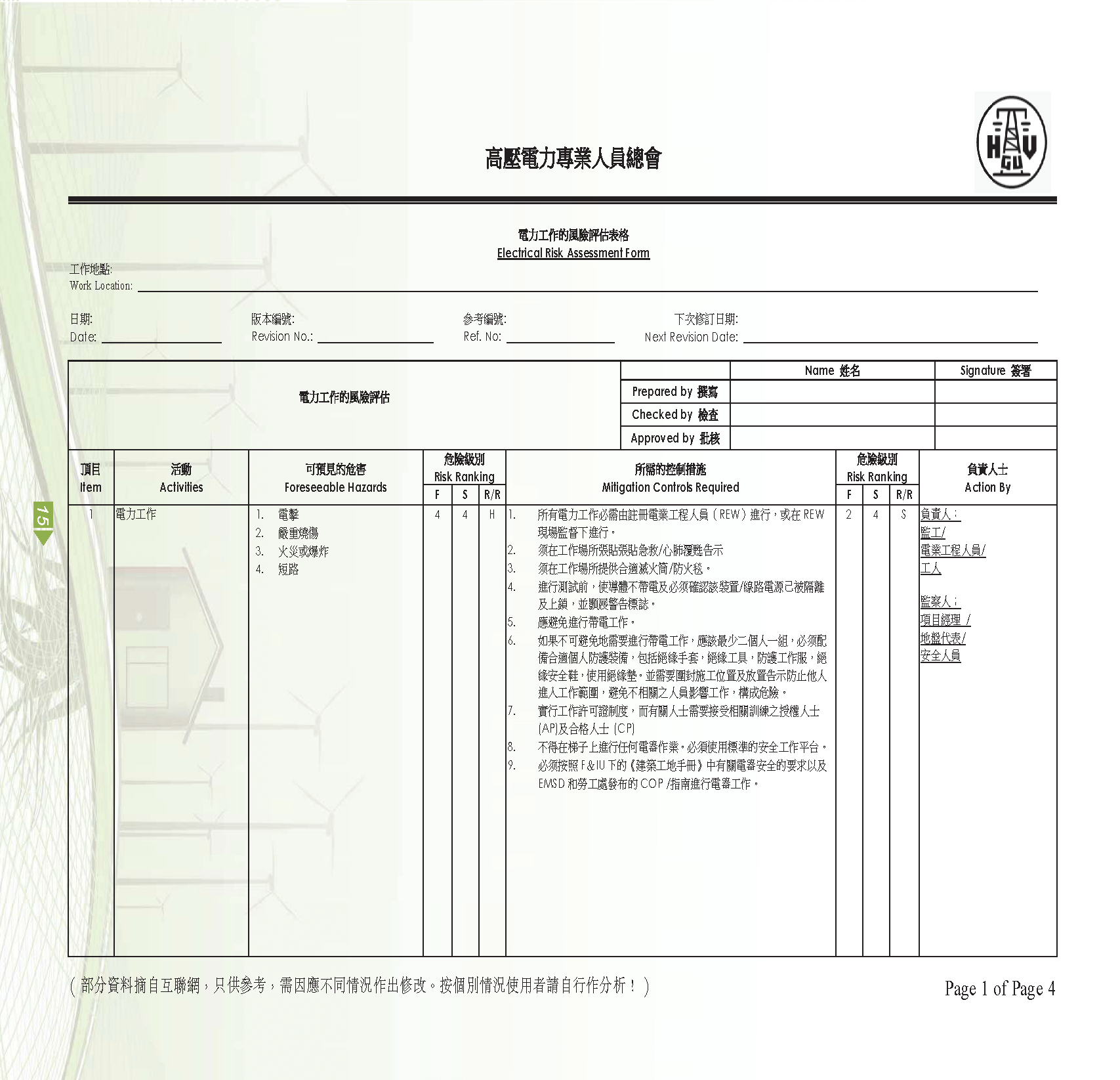 【今日機電第50期】新工會簡介-高壓電力專業人員總會及50-05b 電力工作的風險評估表格
