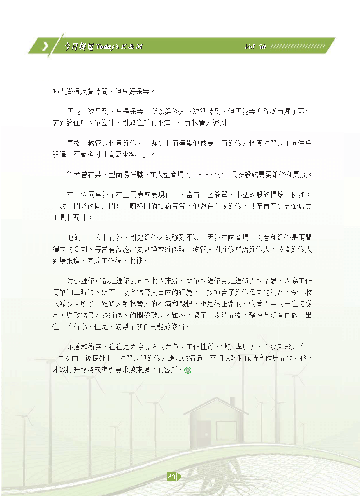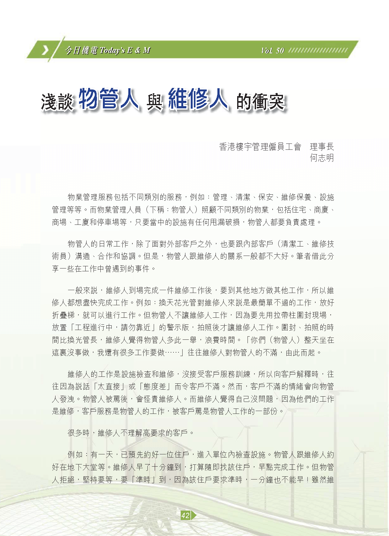 【今日機電第50期】淺談物管人與維修人的衝突-何志明