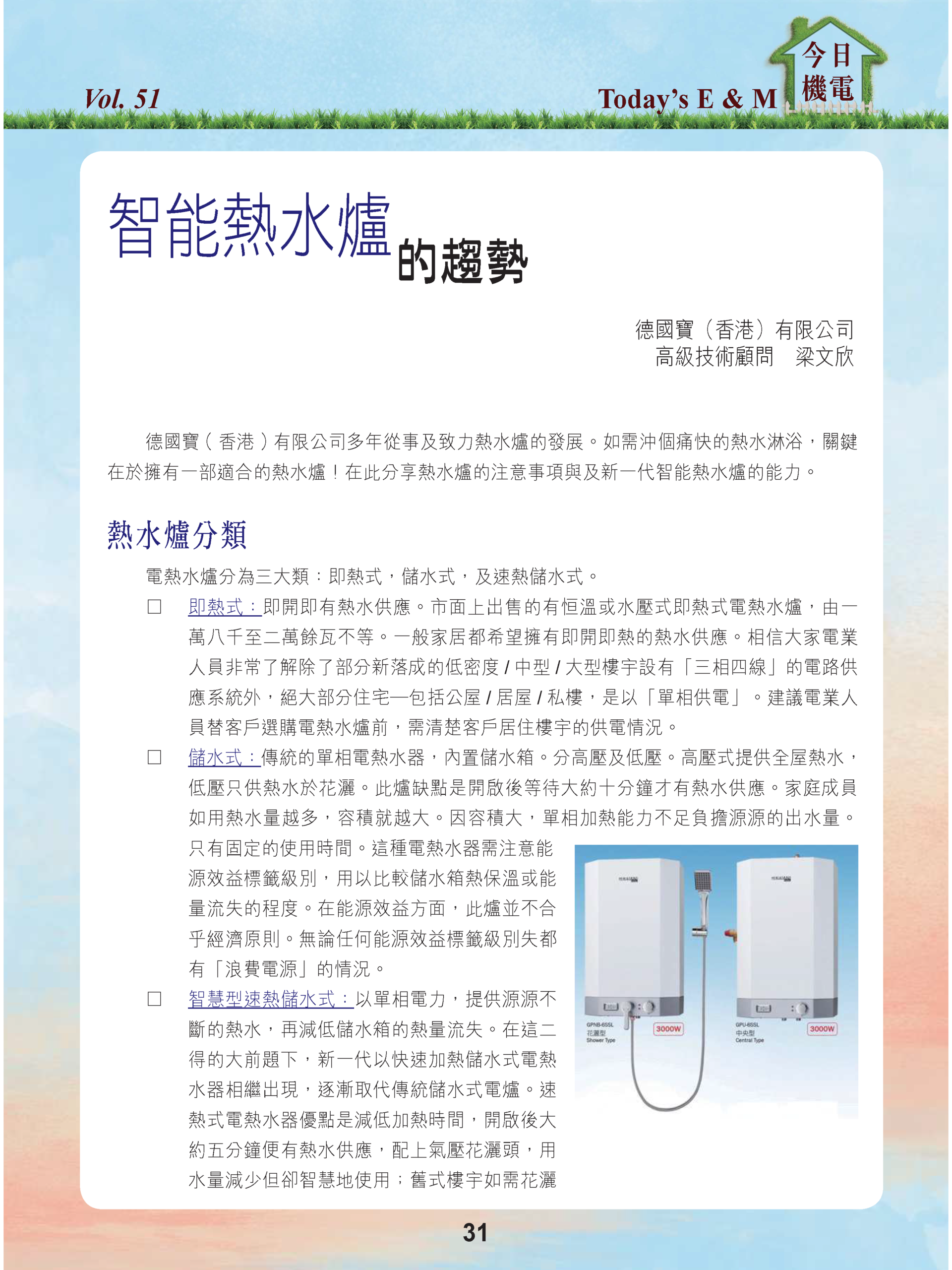 【今日機電第51期】智能熱水爐的趨勢-梁文欣