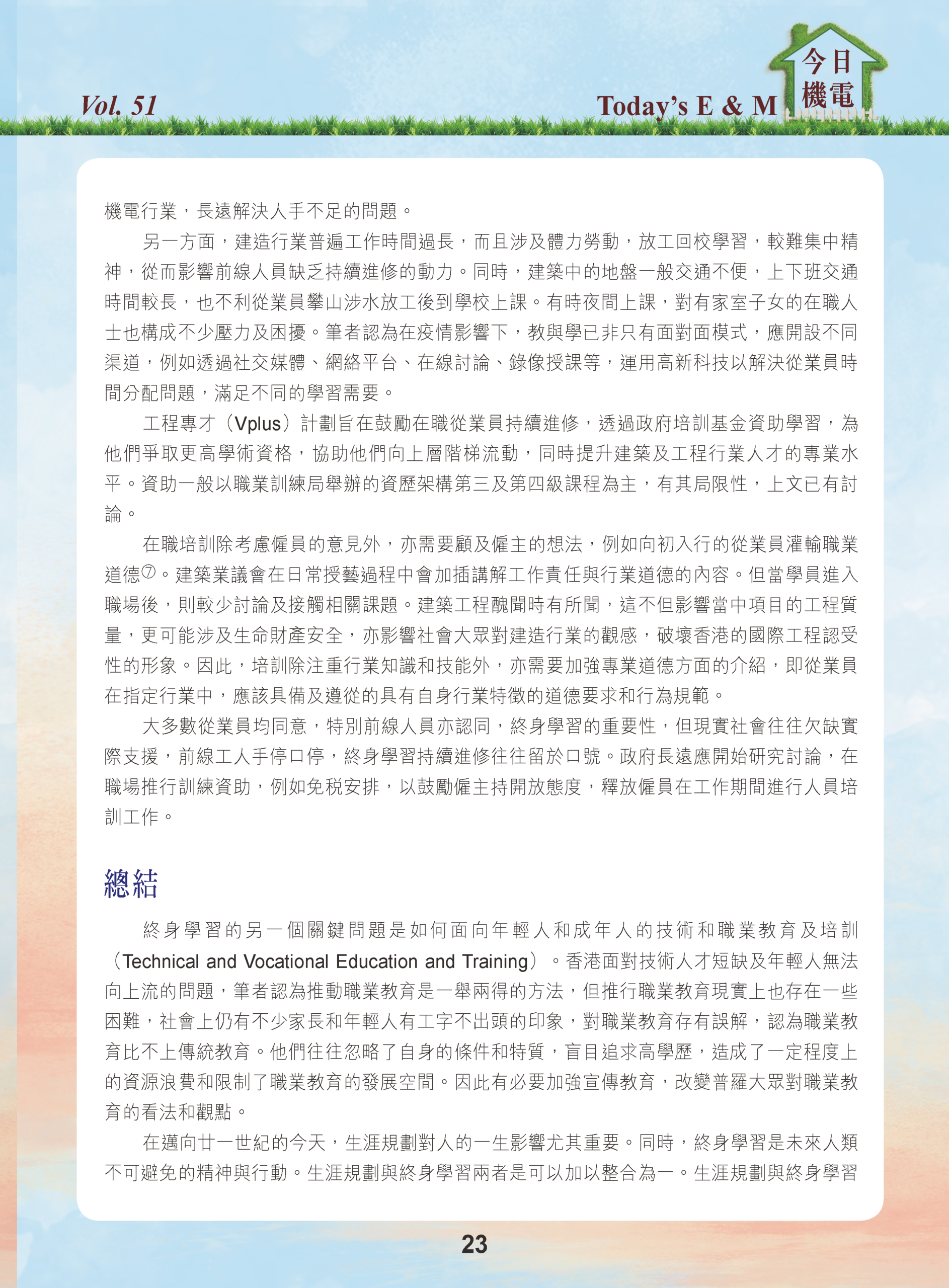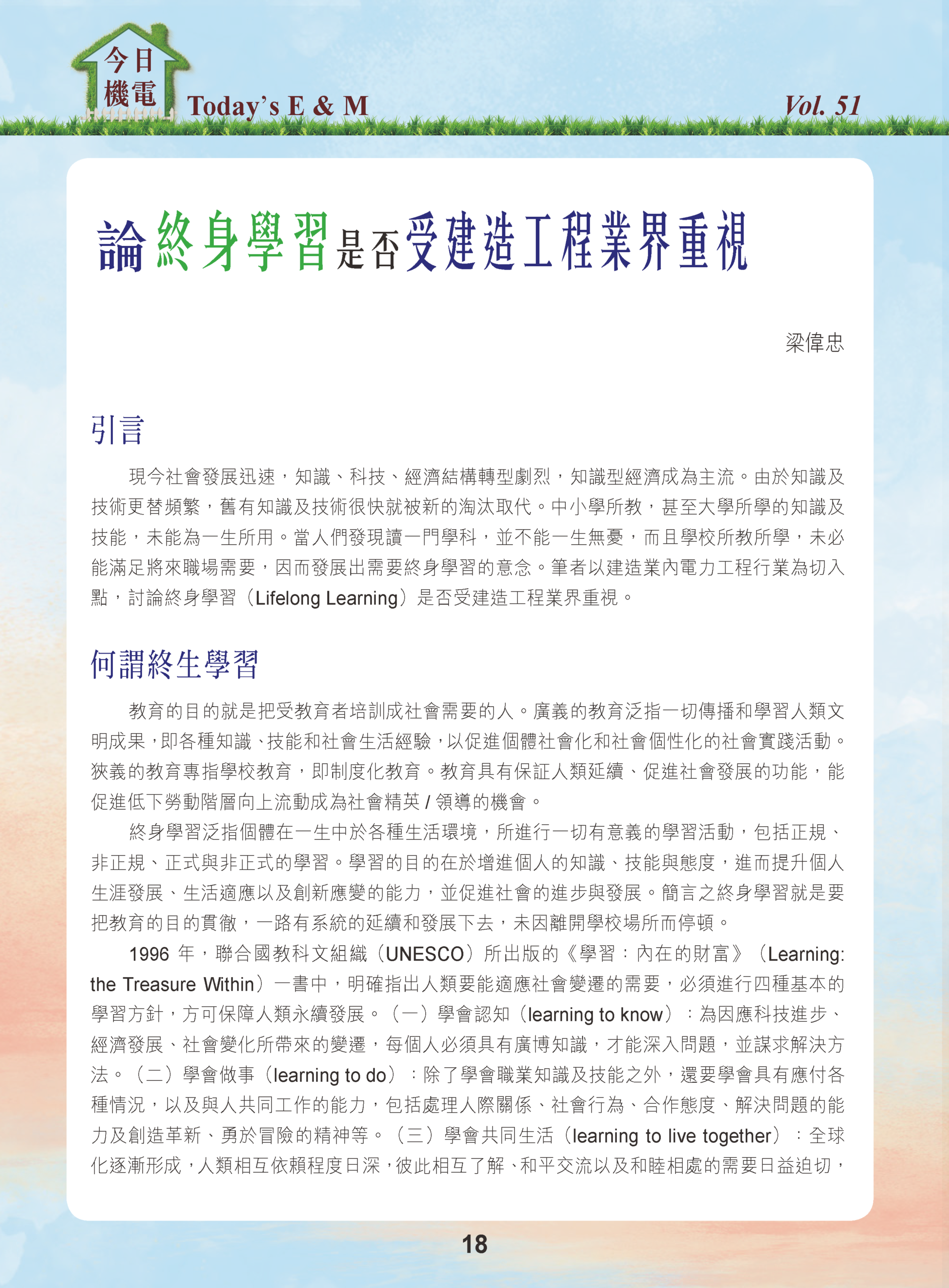【今日機電第51期】論終身學習是否受建造工程業界重視-梁偉忠