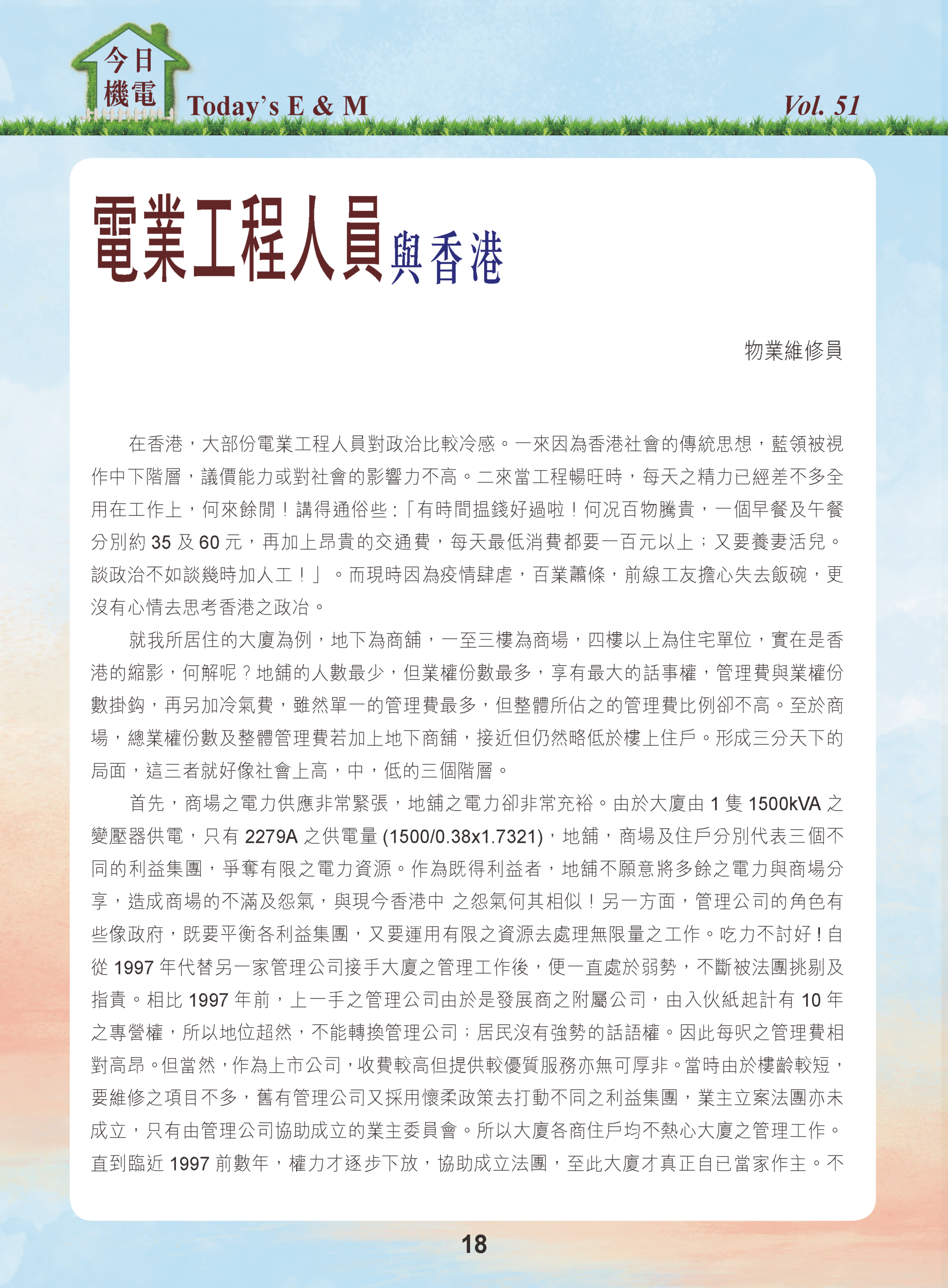 【今日機電第51期】電業工程人員與香港