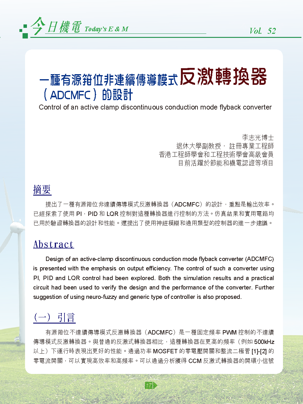 【今日機電第52期】一種有源箝位非連續傳導模式反激轉換器-李志光博士