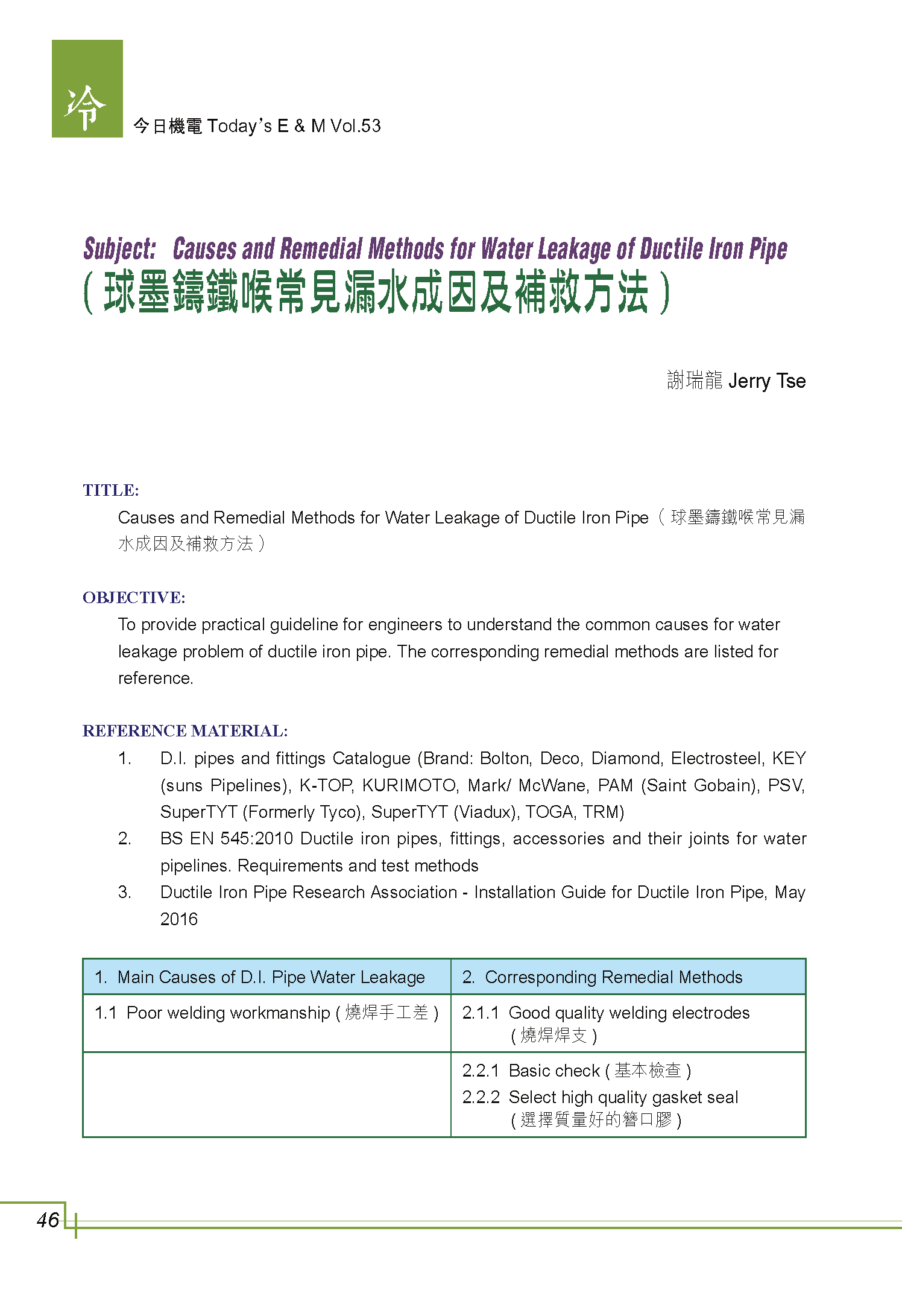 【今日機電第53期】冷氣散熱球墨鑄鐵喉常見漏水成因及補救方法-謝瑞龍