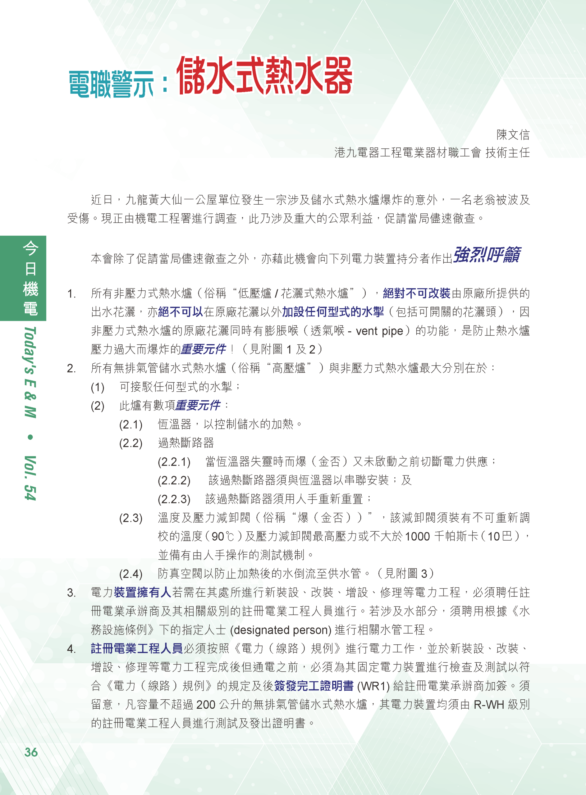 【今日機電第55期】電職警示:儲水式熱水器-陳文信
