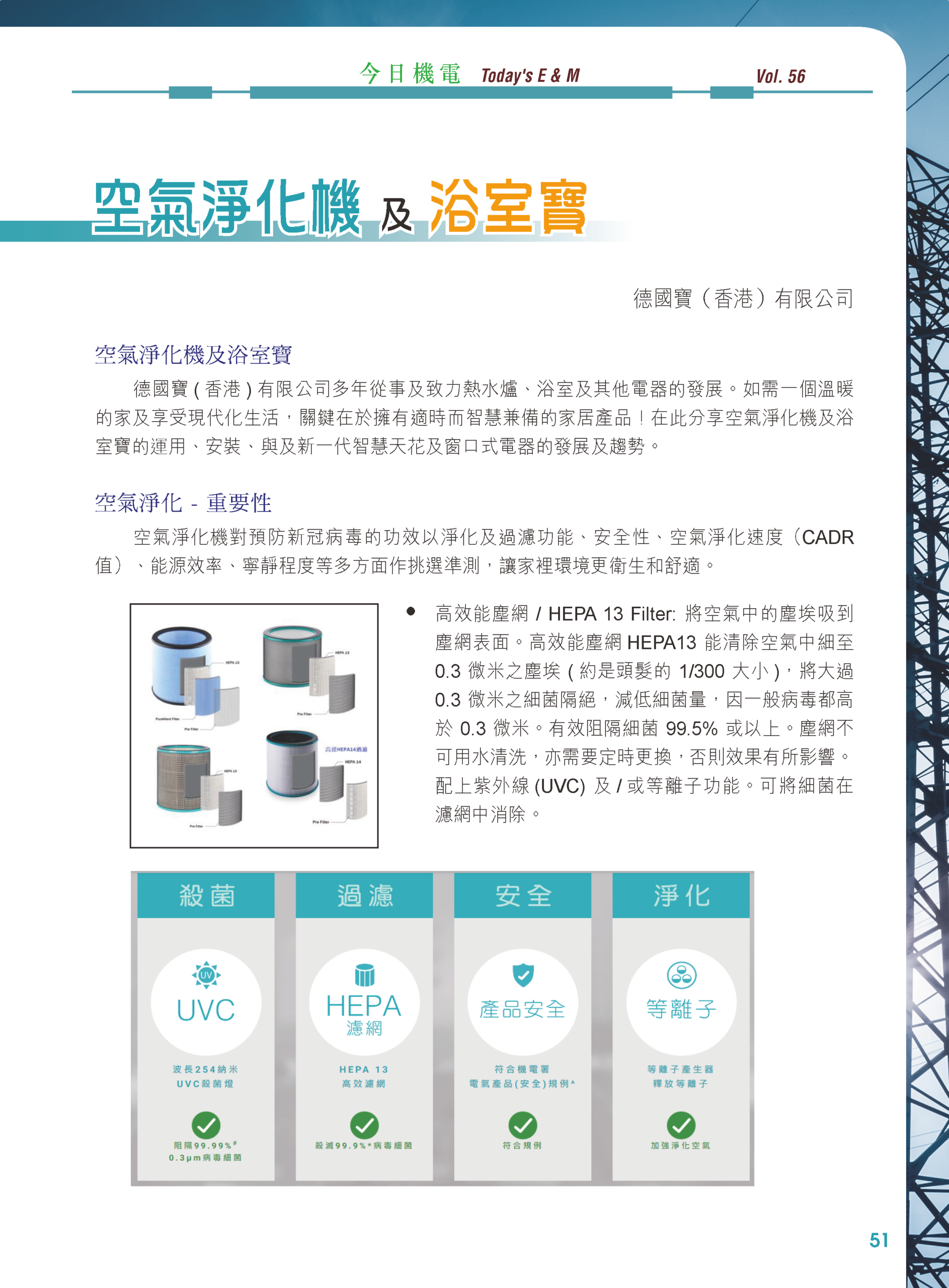 【今日機電第56期】空氣淨化機及浴室寶-德國寶(香港)有限公司