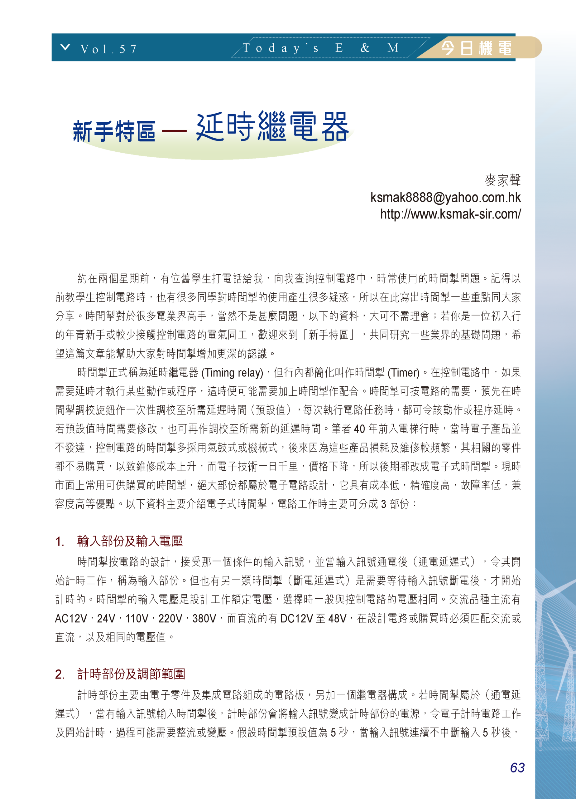 【今日機電第57期】新手特區-延時繼電器-麥家聲