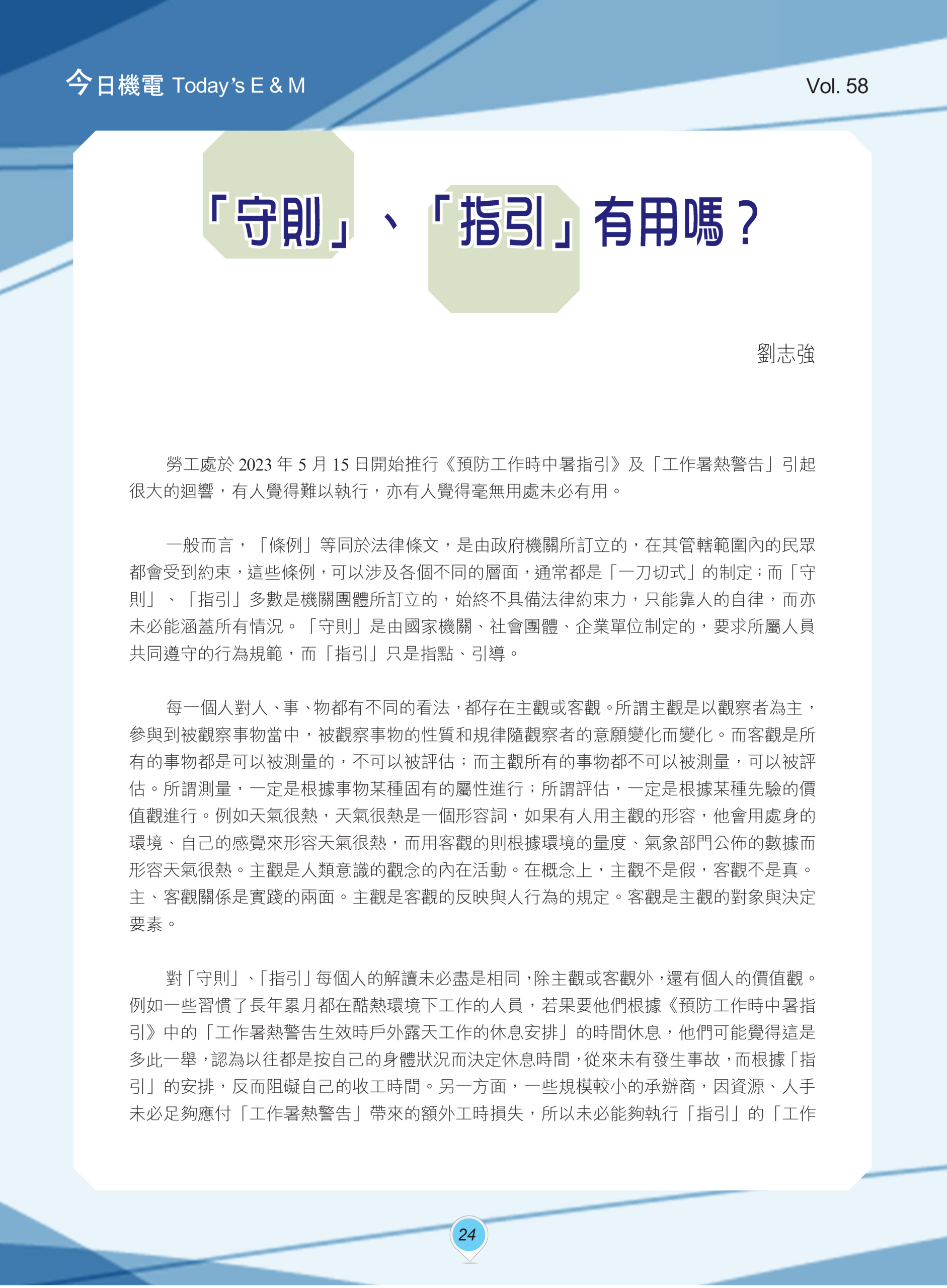 【今日機電第58期】「守則」、「指引」有用嗎?-劉志強