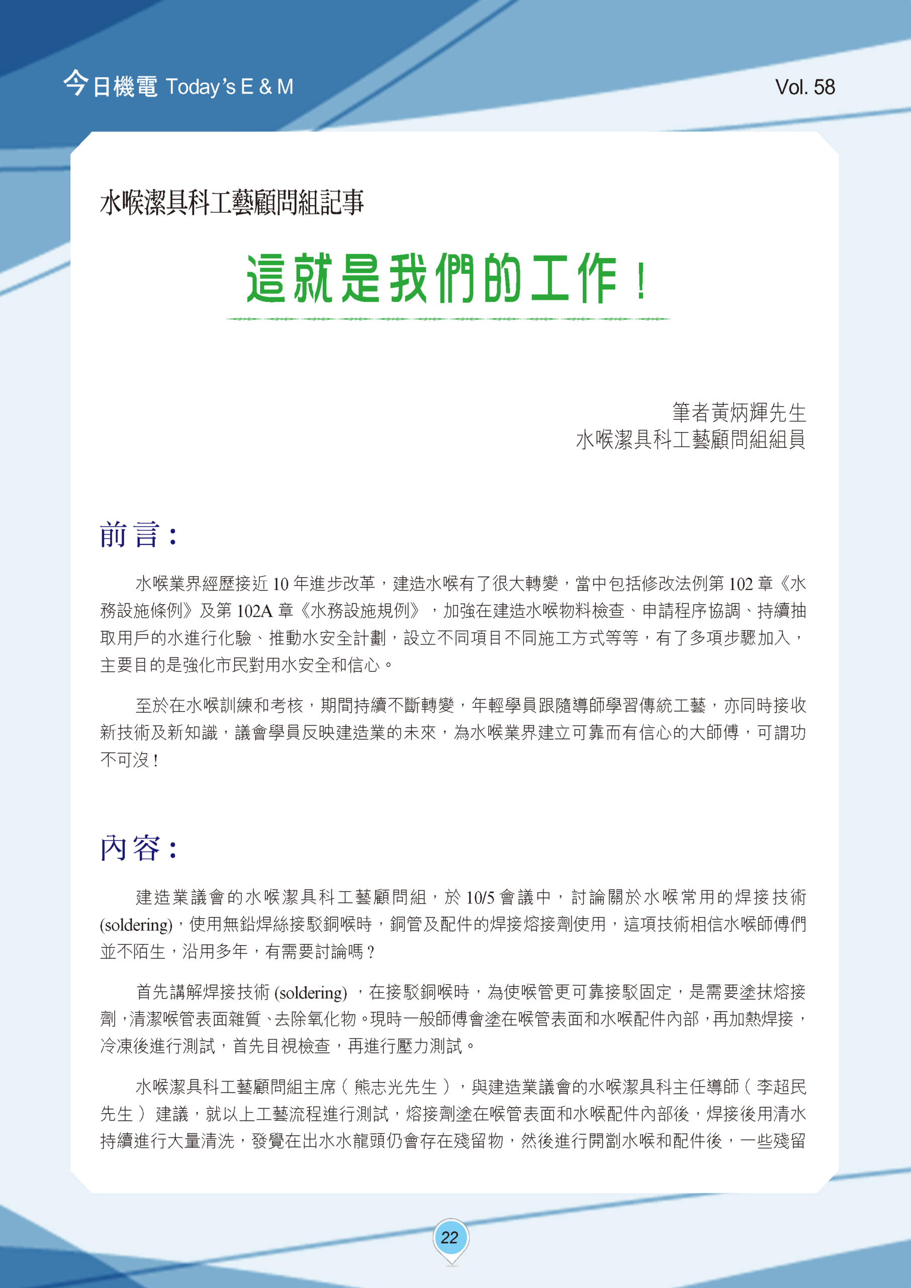 【今日機電第58期】水喉潔具科工藝顧問組記事_黃炳輝