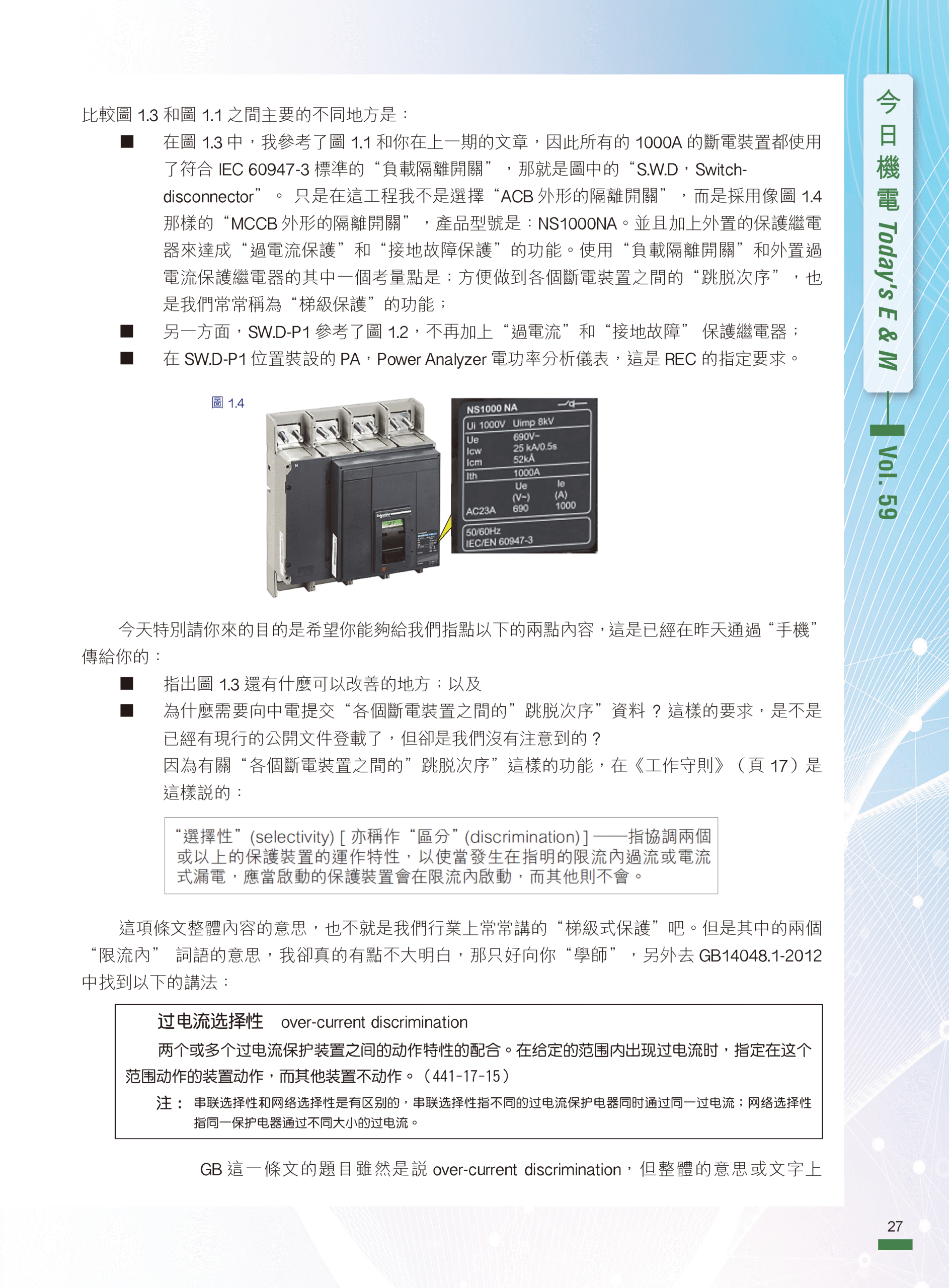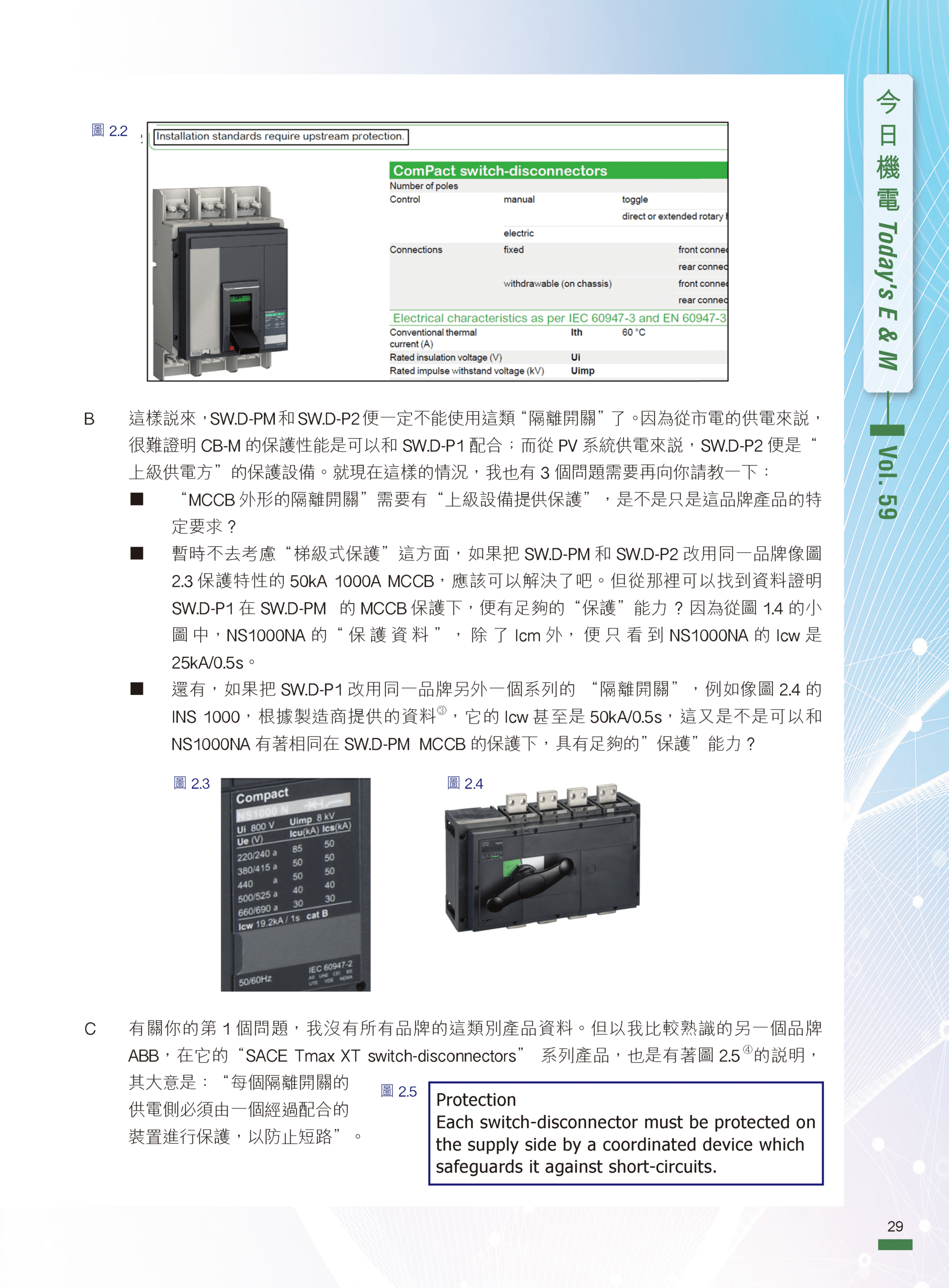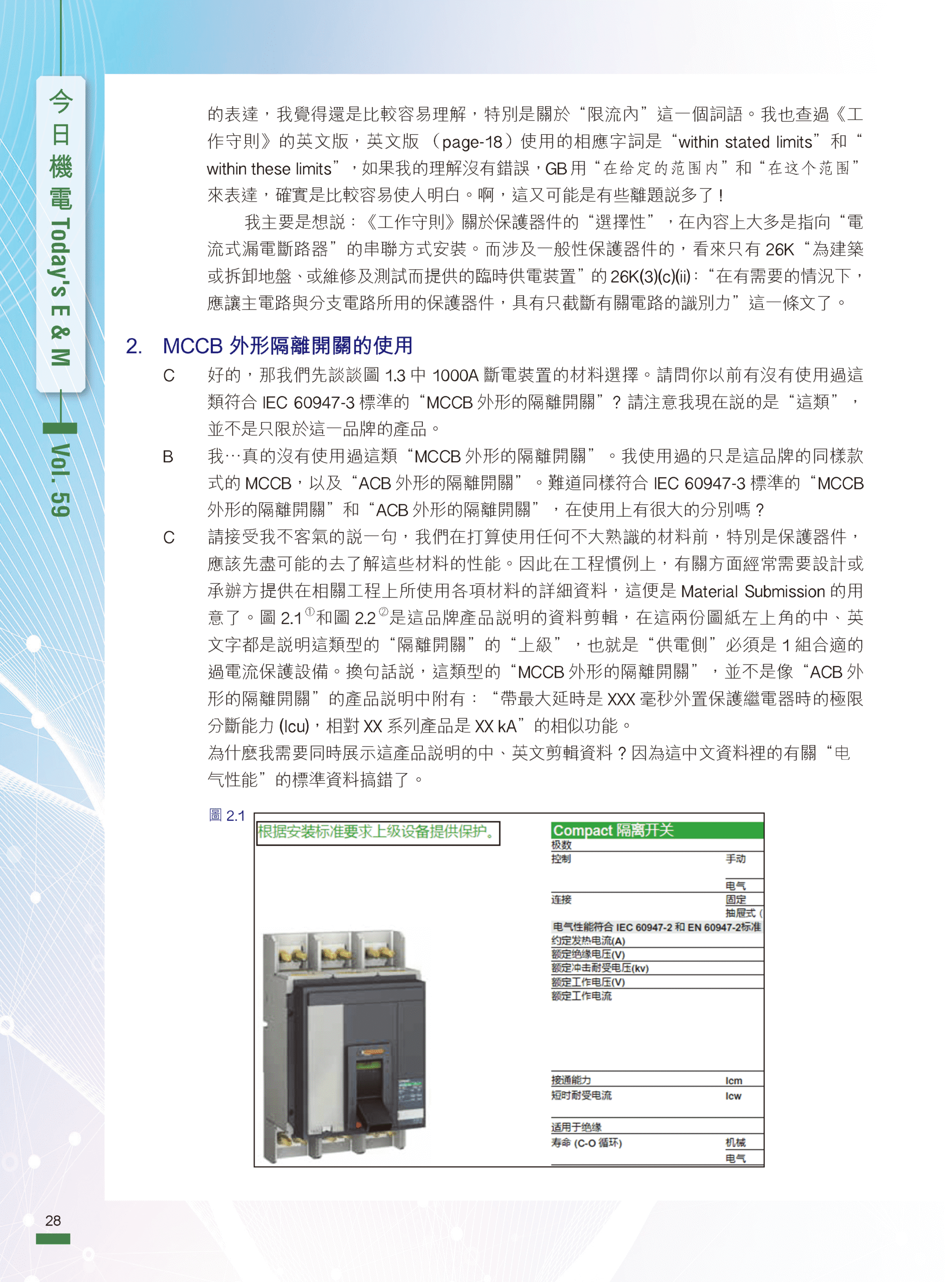 【今日機電第59期】對話錄(二):MCCB外形隔離開關的使用及其他-陳富濟