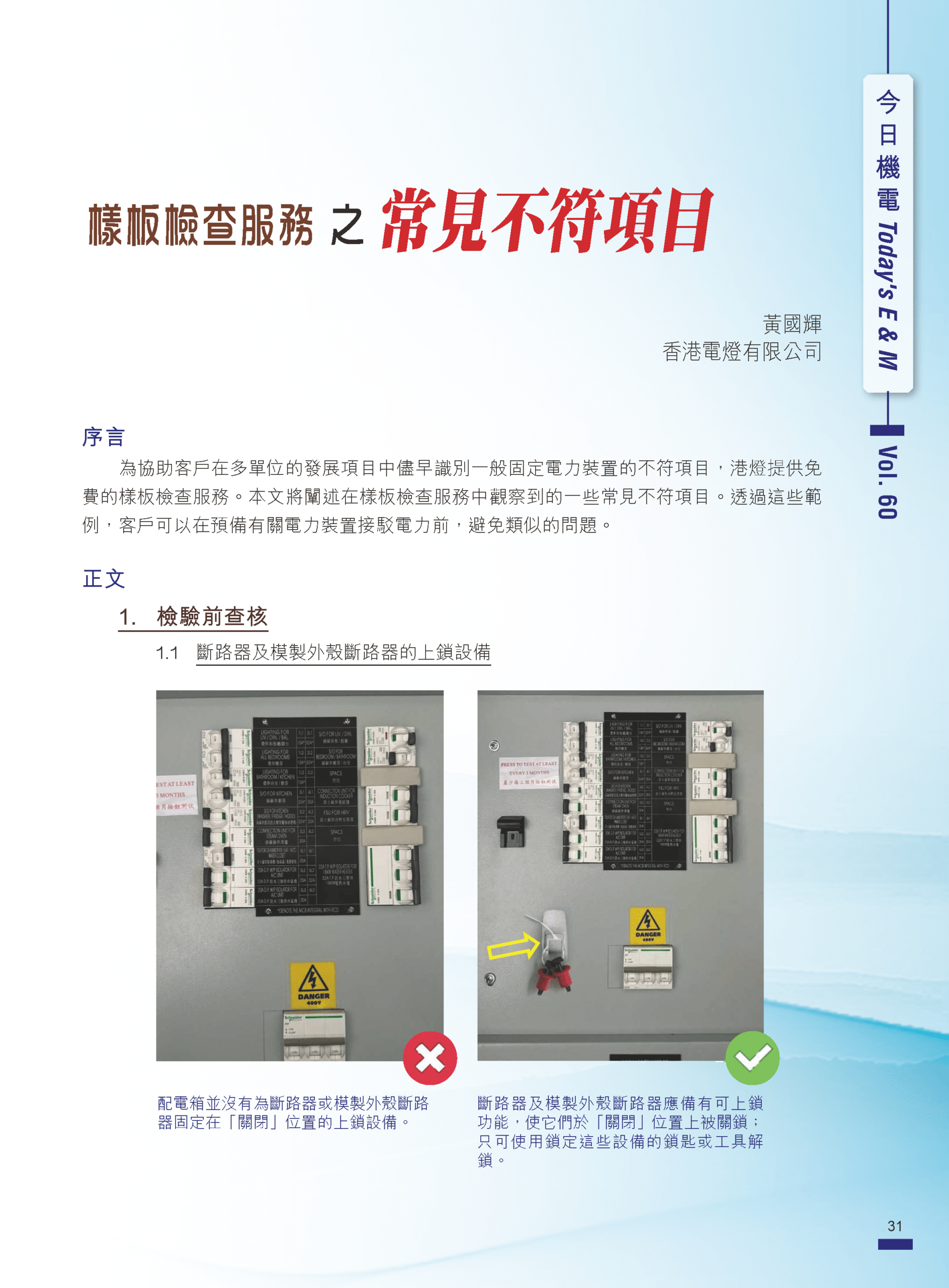【今日機電第60期】樣板檢查服務之常見不符項目-香港電燈有限公司 黃國輝