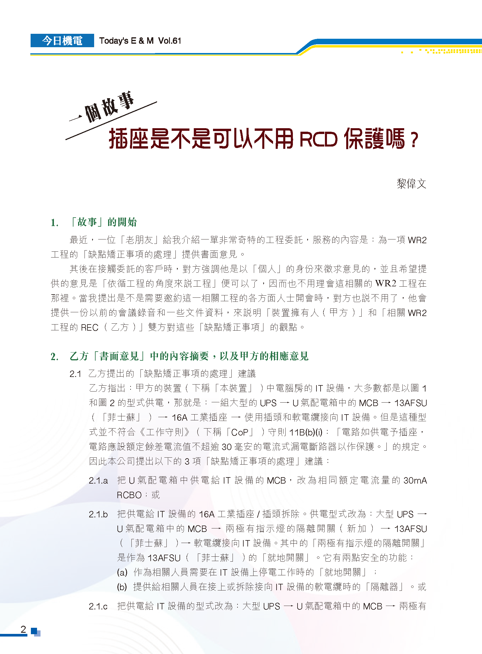 【今日機電第61期】一個故事-插座是不是可以不用RCD保護嗎-黎偉文