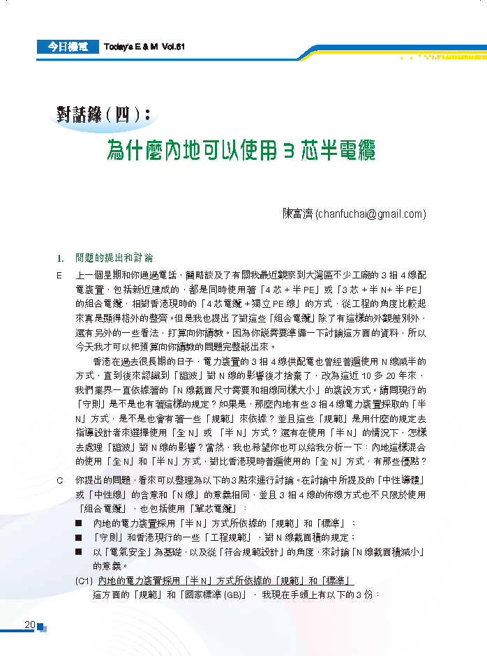 【今日機電第61期】對話錄(四)為什麼內地可以使用3芯半電纜-陳富濟