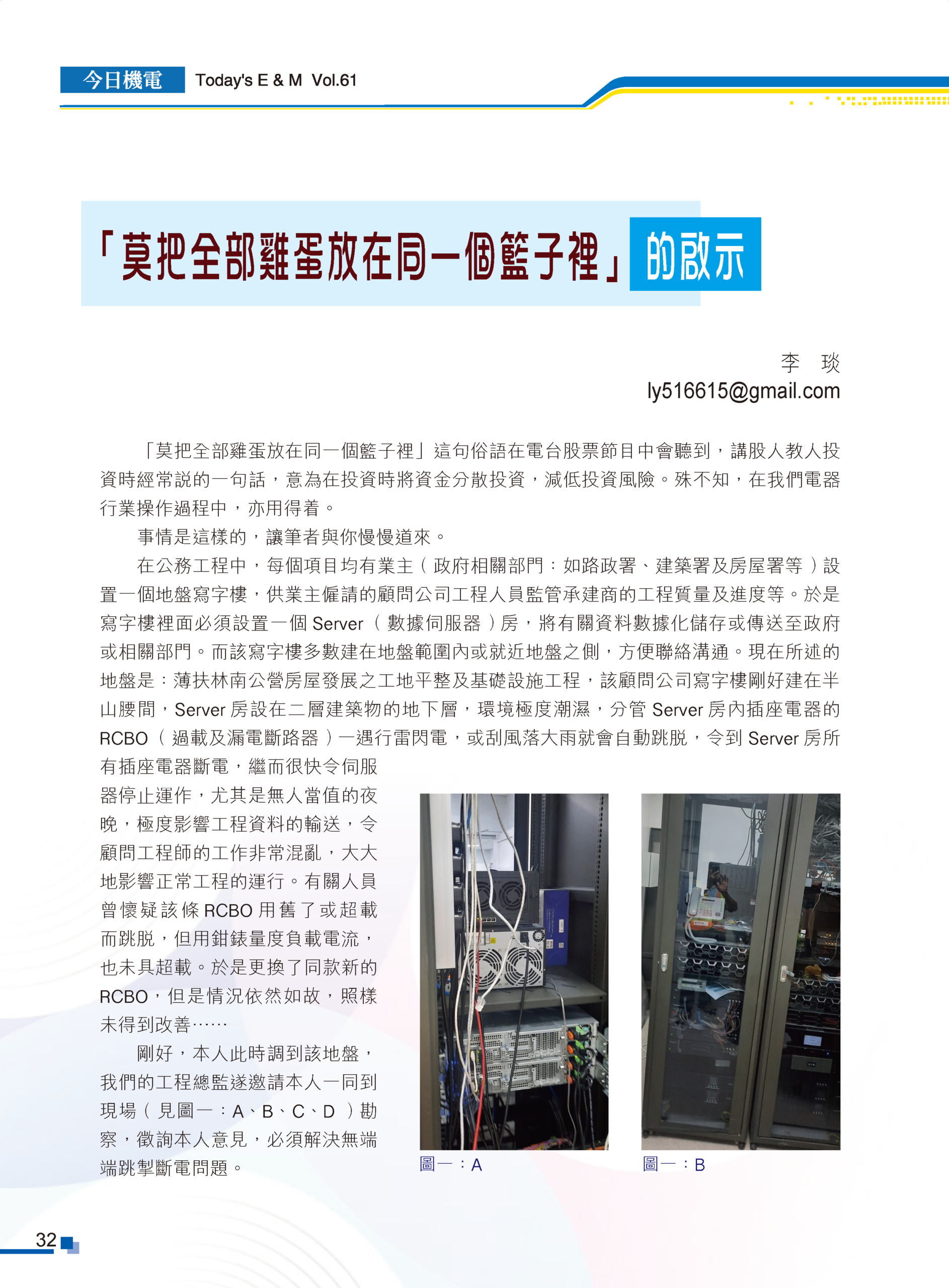 【今日機電第61期】莫把全部雞蛋放在同一個籃子裡的啟示-李琰