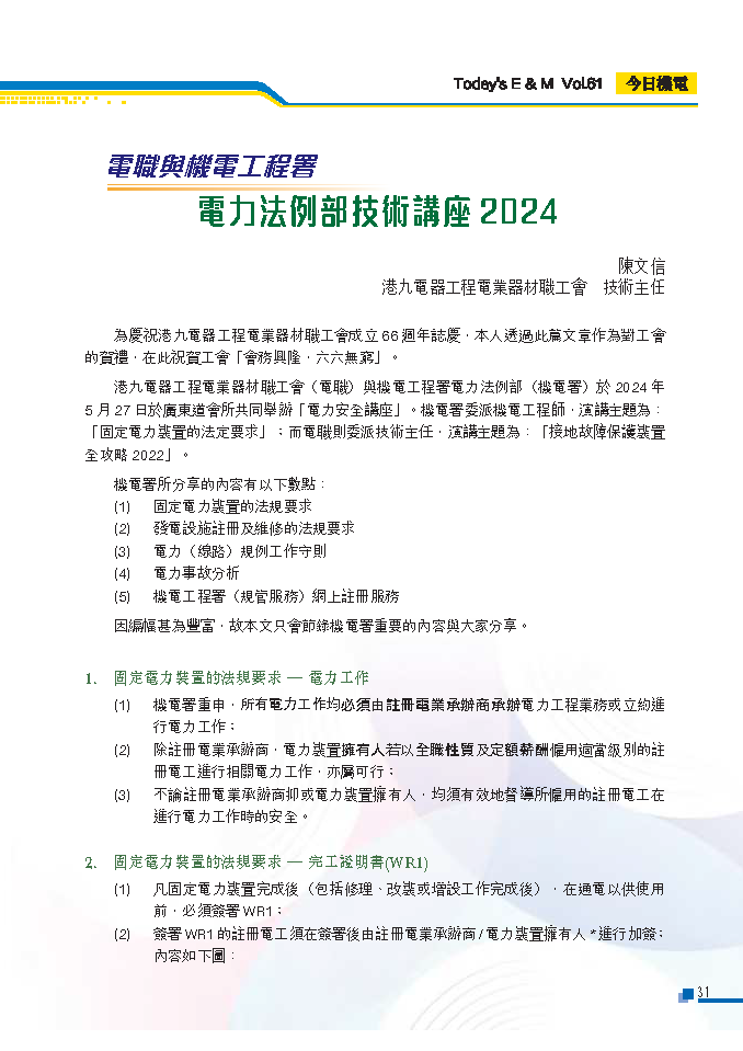 【今日機電第61期】電職與機電工程署電力法例部技術講座2024-陳文信
